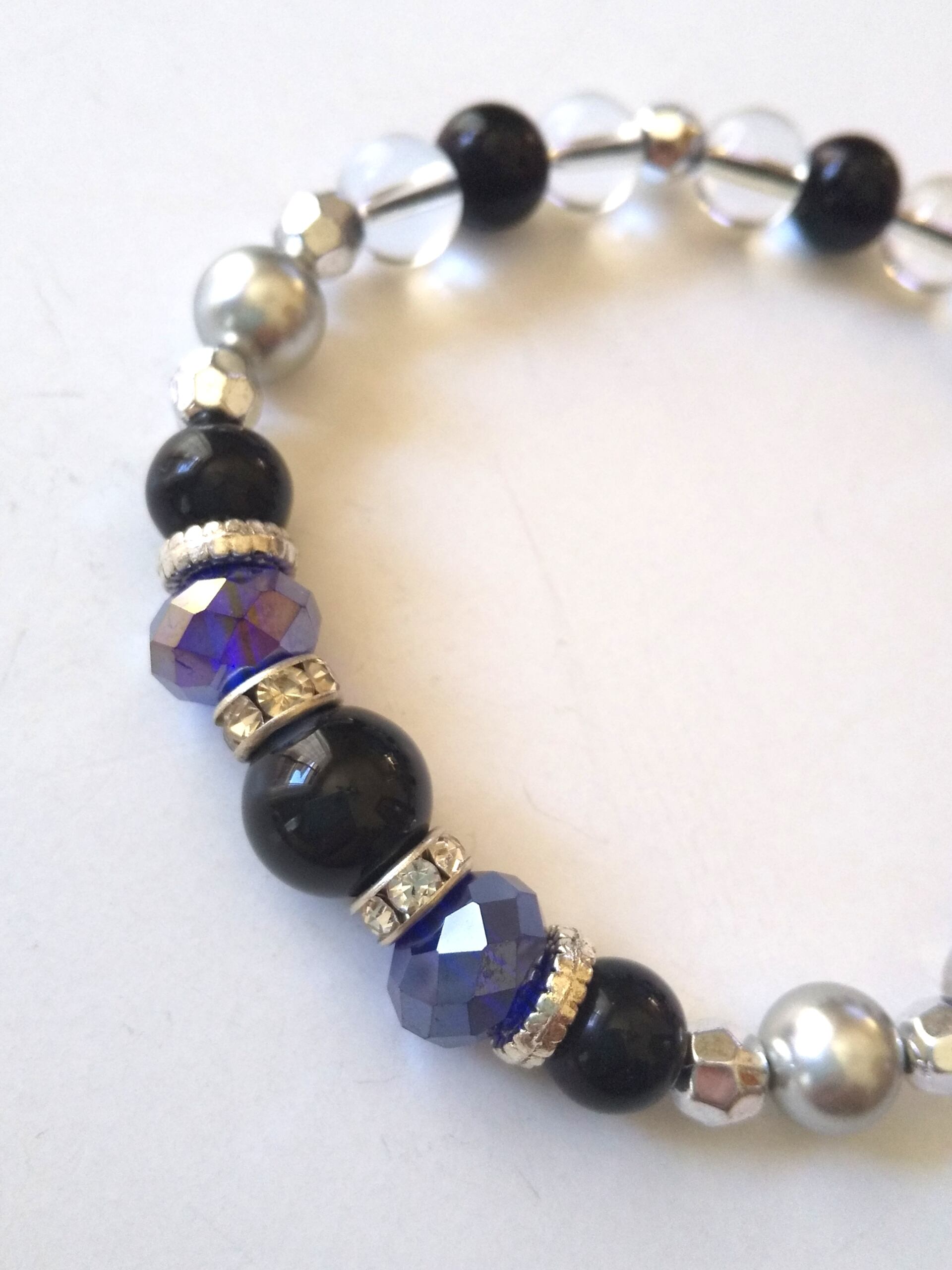 メンズスブレス ブラックスストーン &カットクリスタル N-103