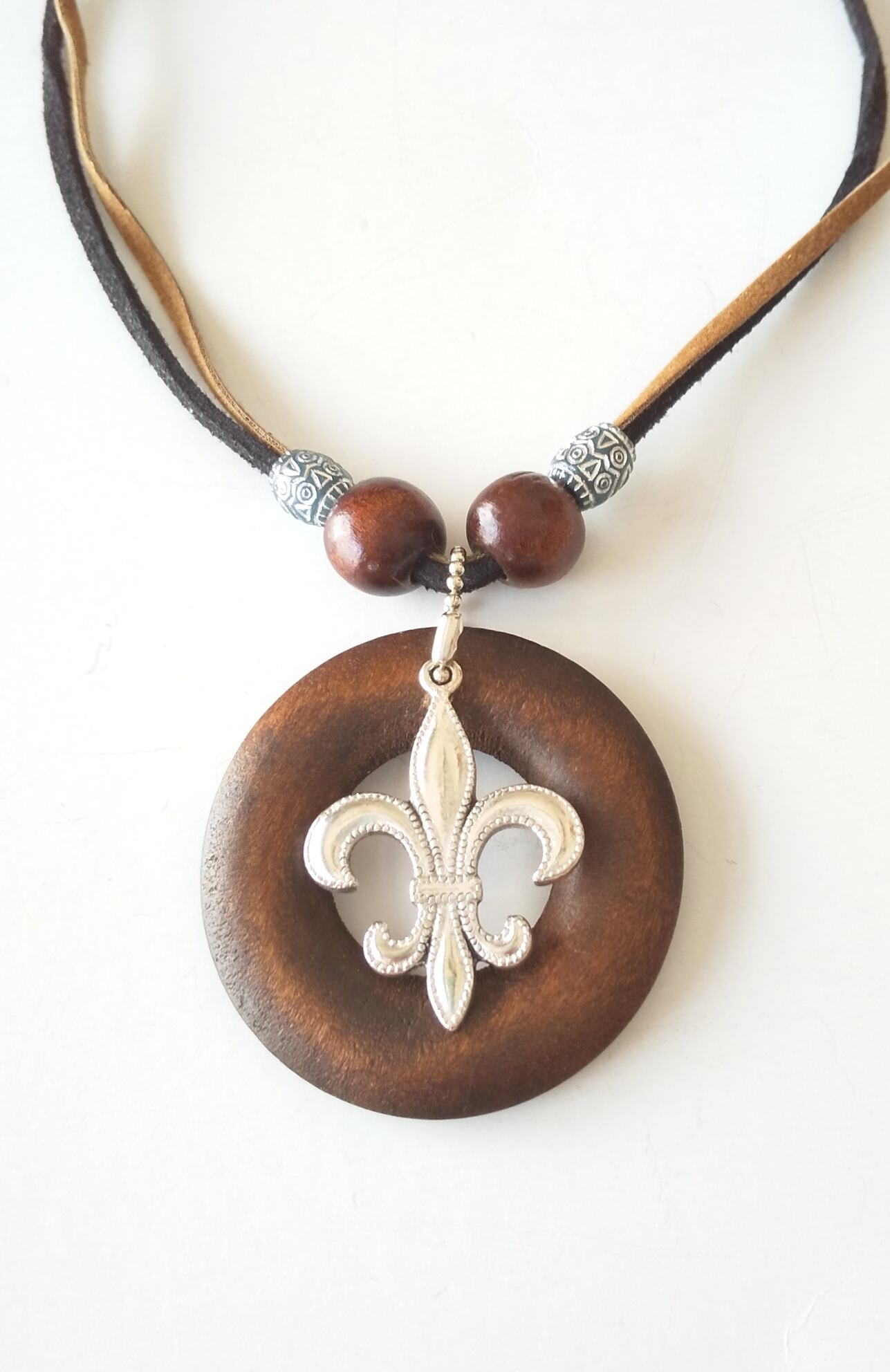 メンズネックレス シルバー百合の紋章& ウッドサークル Y-650