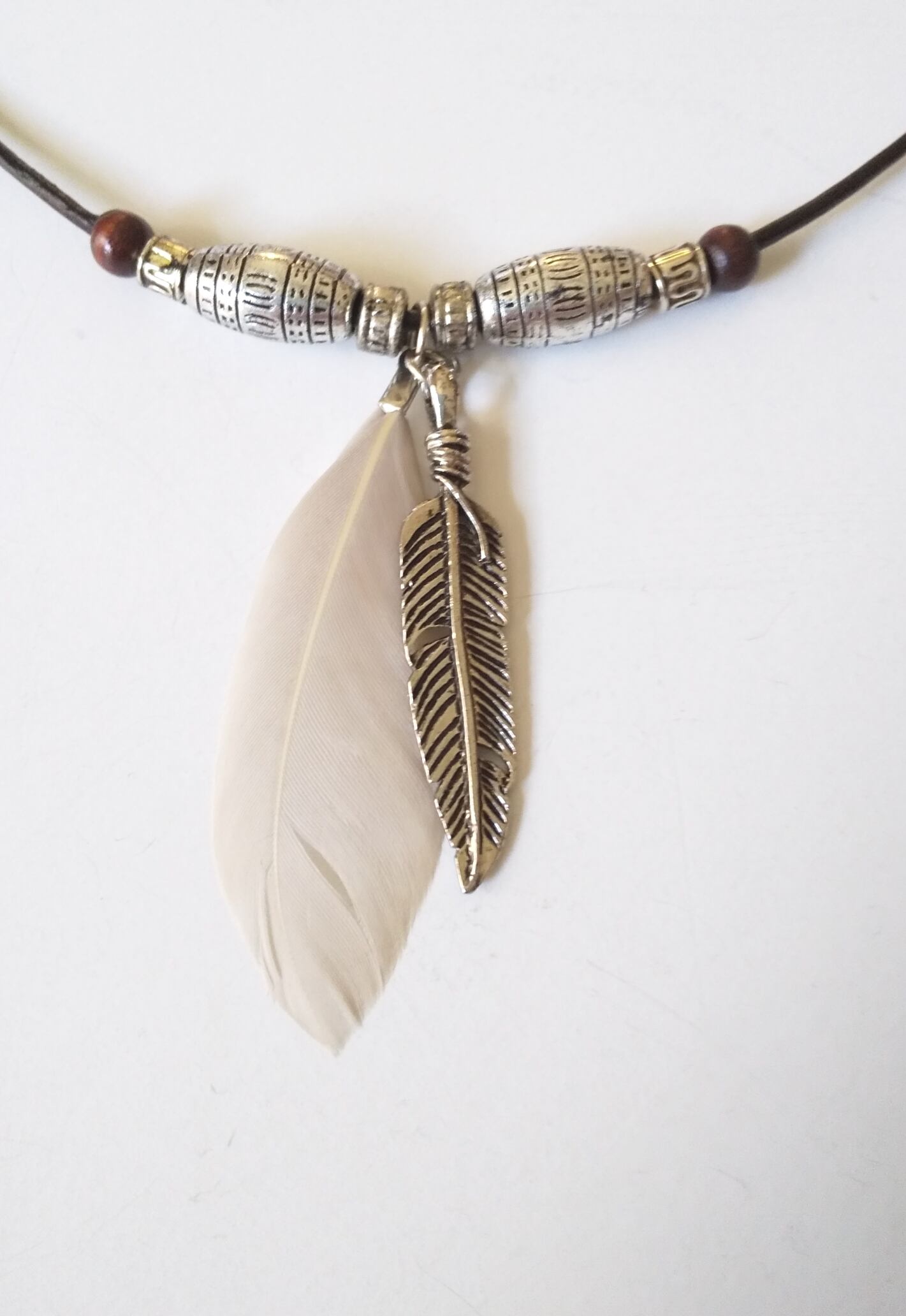 メンズネックレス シルバーカラーフェザー &ナチュラルフェザー Y-501