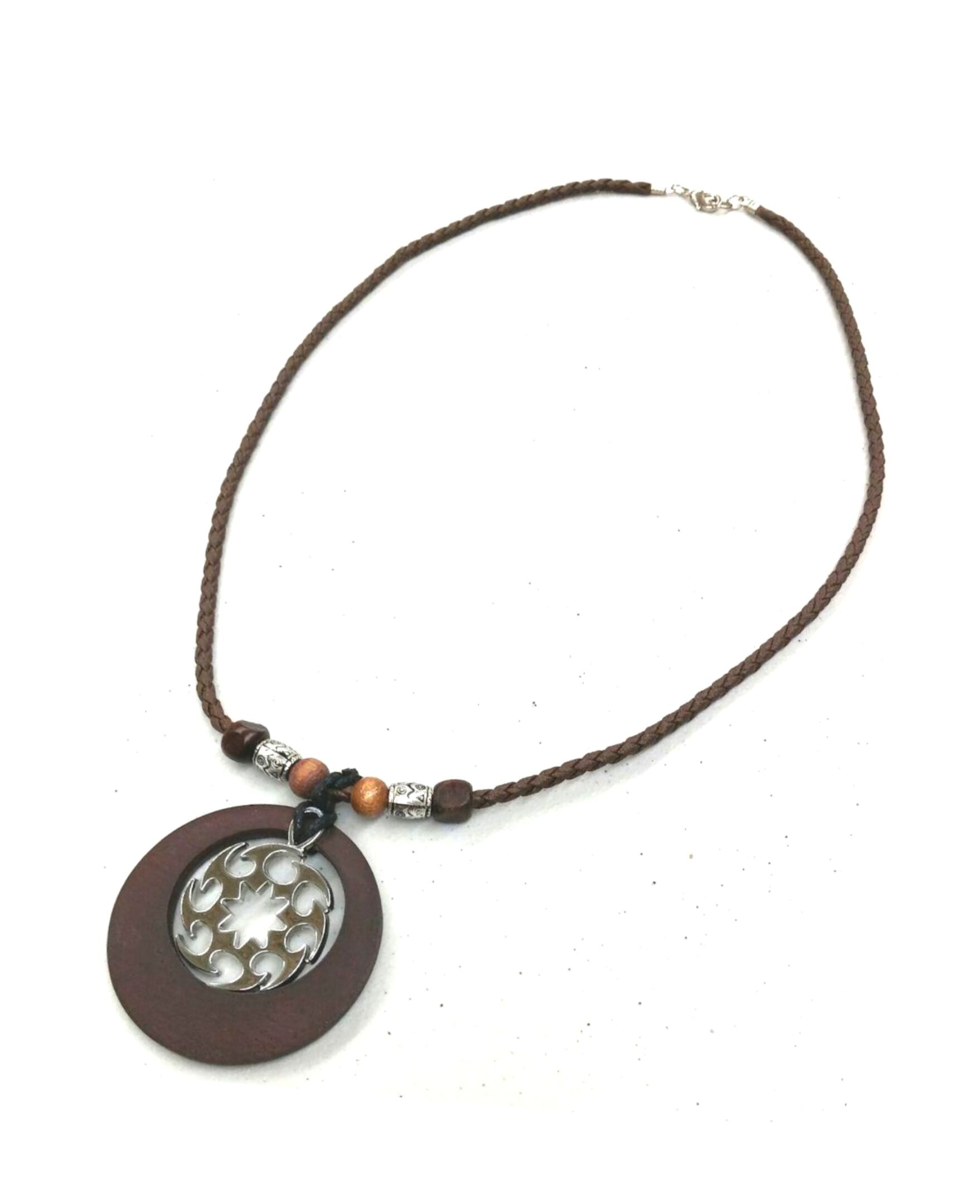 メンズネックレス 天然サークルウッド &巴雷シルバー Y-540