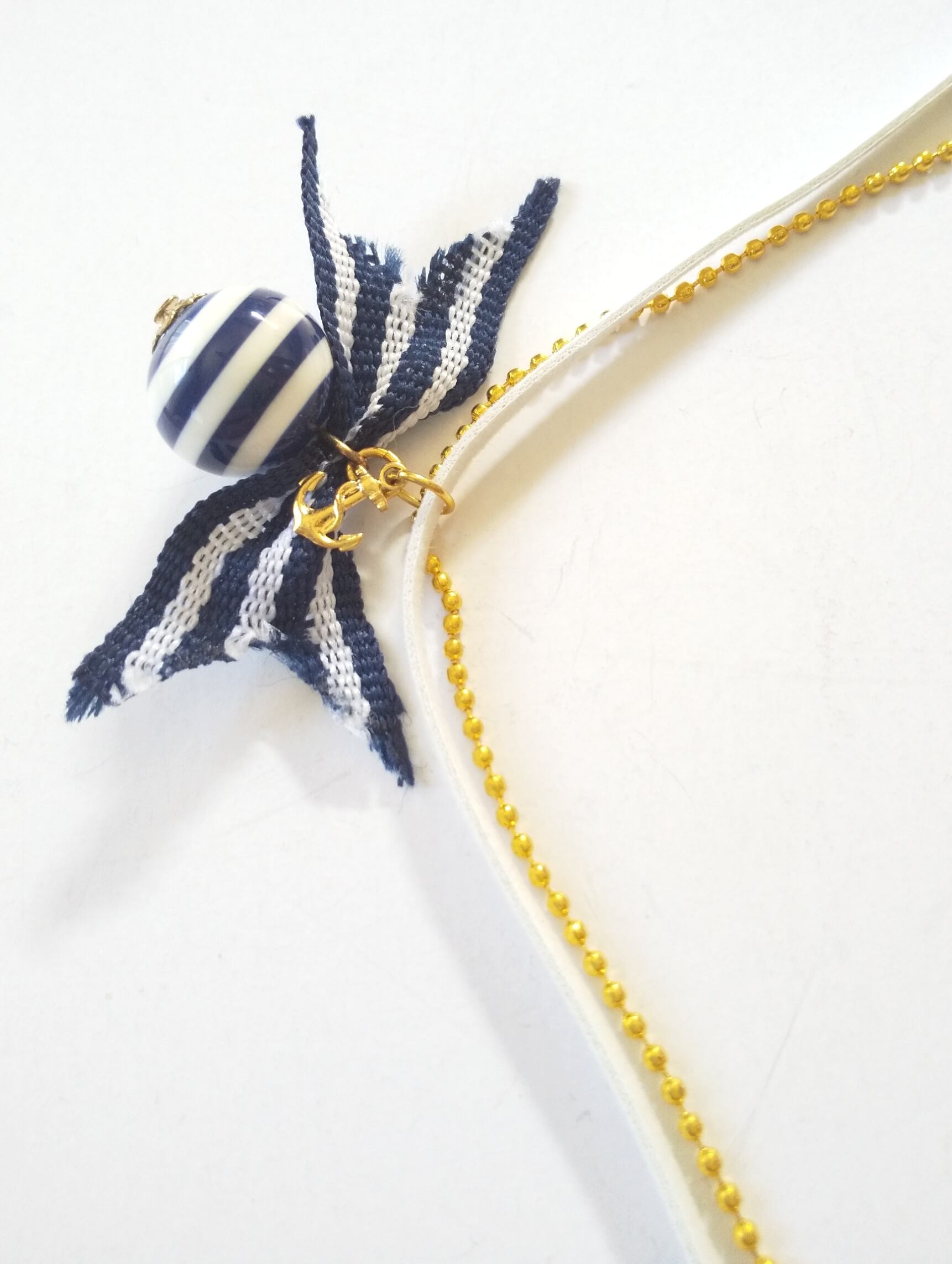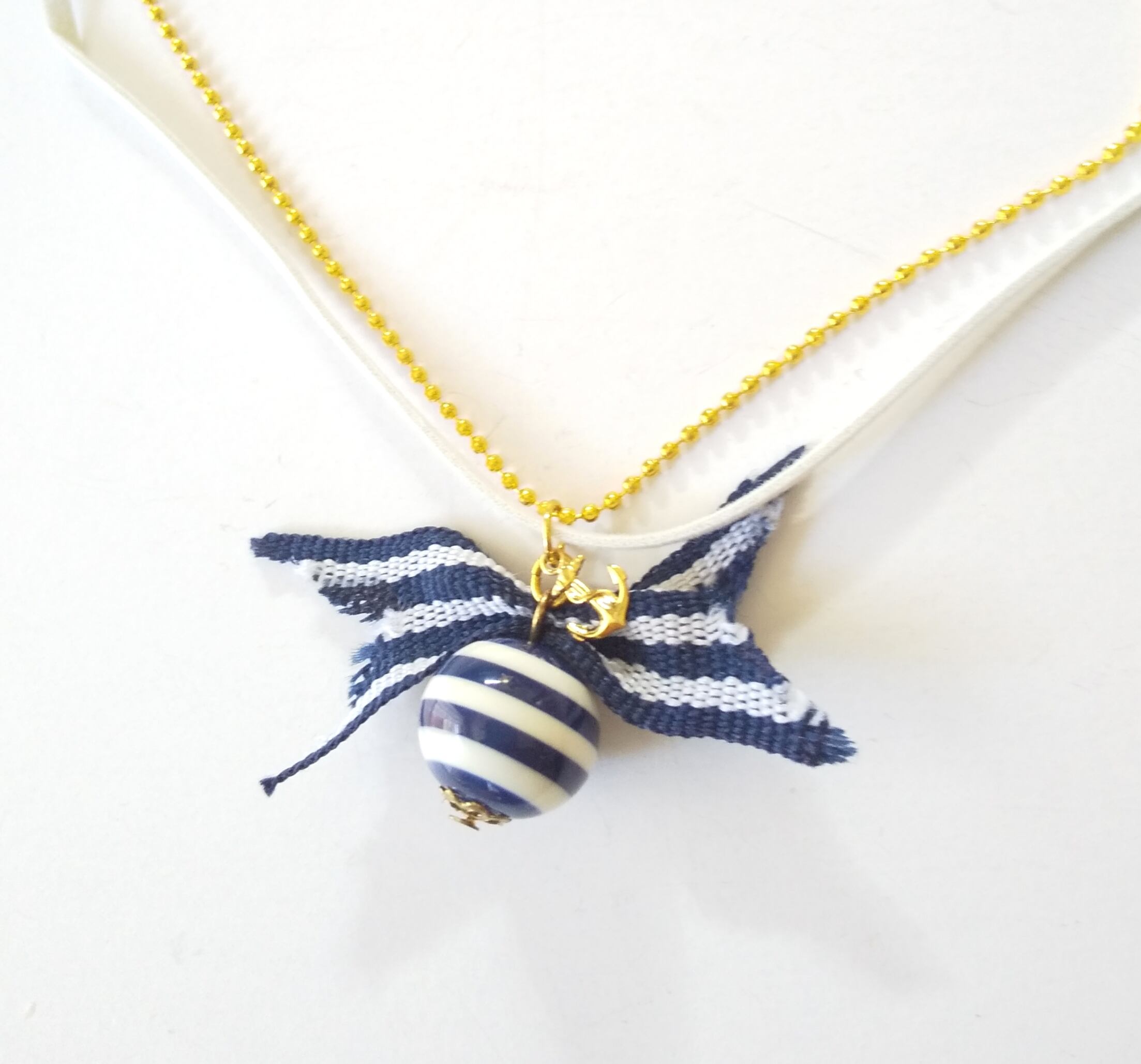 マリンネックレス ネイビーブルー&ホワイトカラー リボンボール U-200