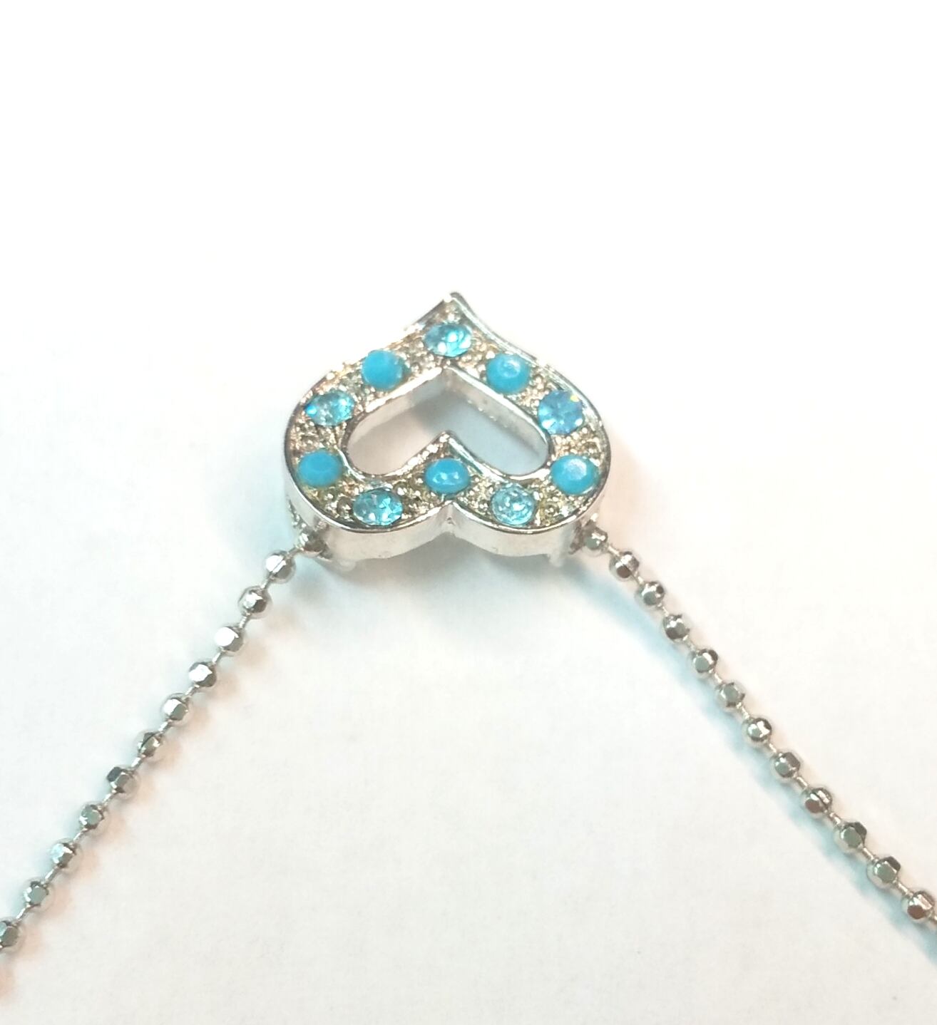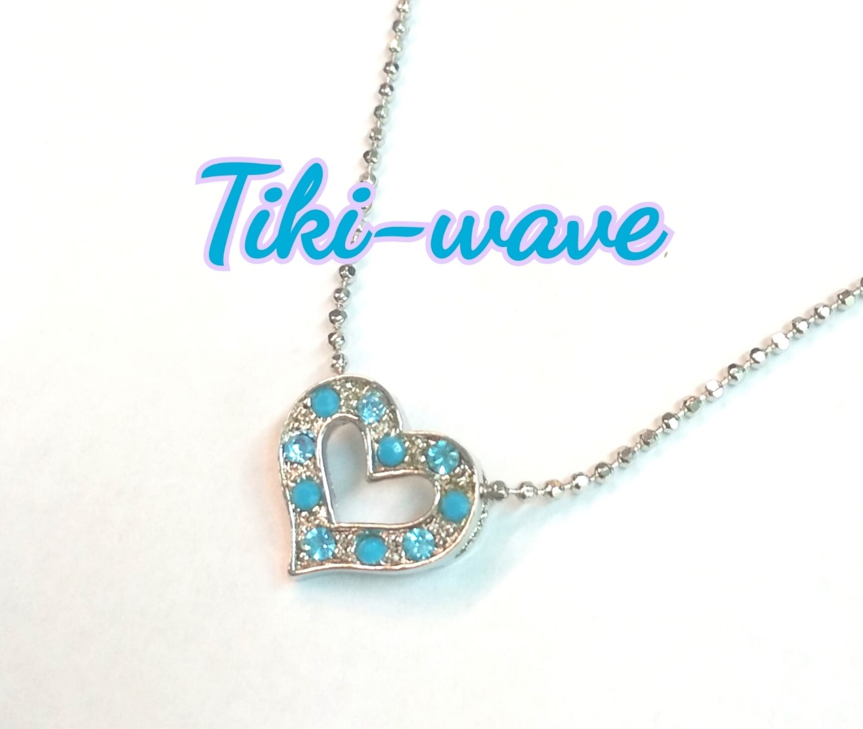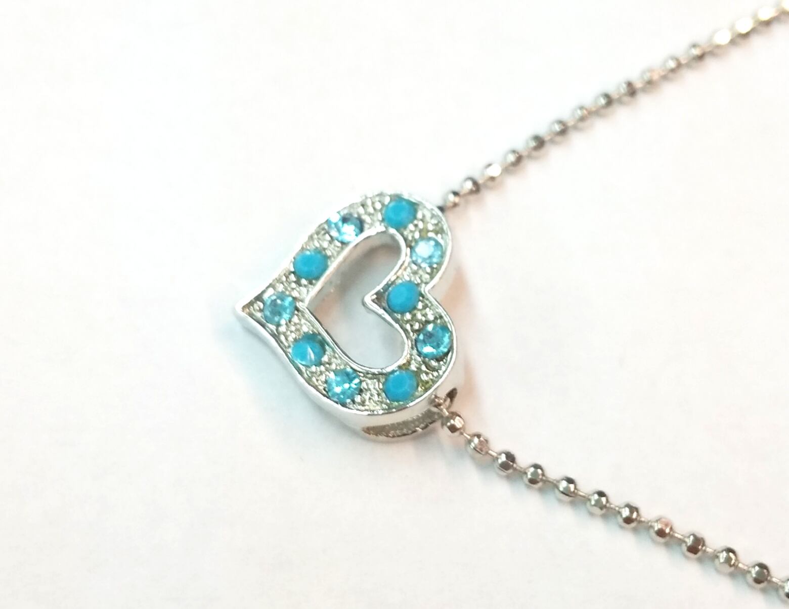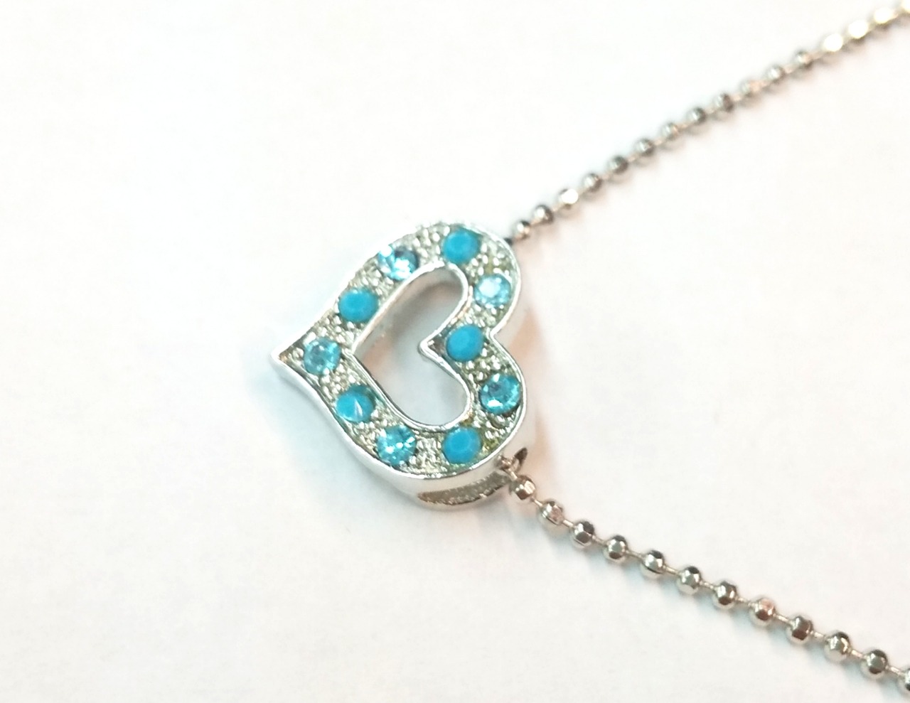 レディースネックレス シルバーカラー ハート アクアブルーCZ L-807