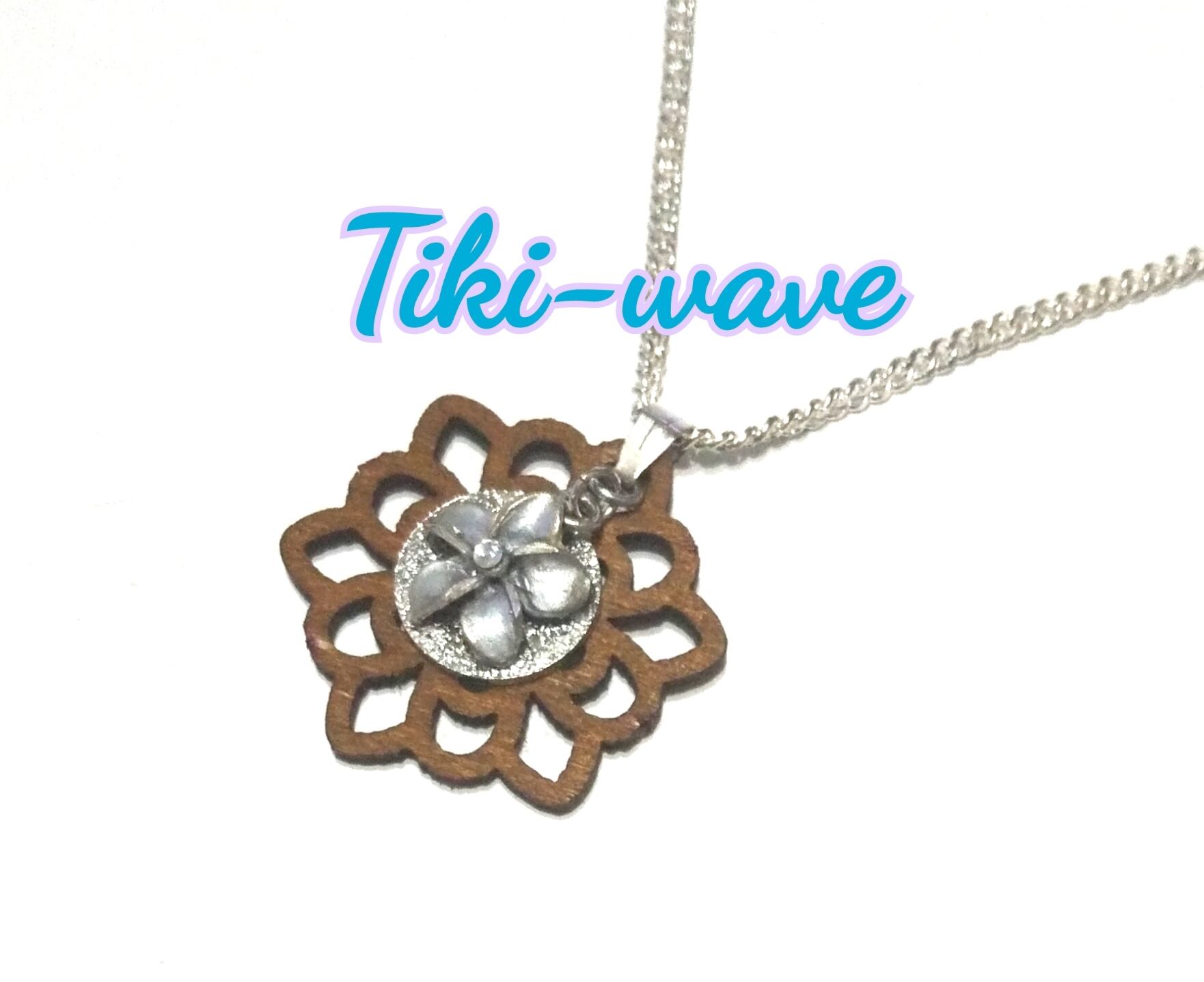 ハワイアンネックレス シルバープルメリア& ウッドプレート P-610