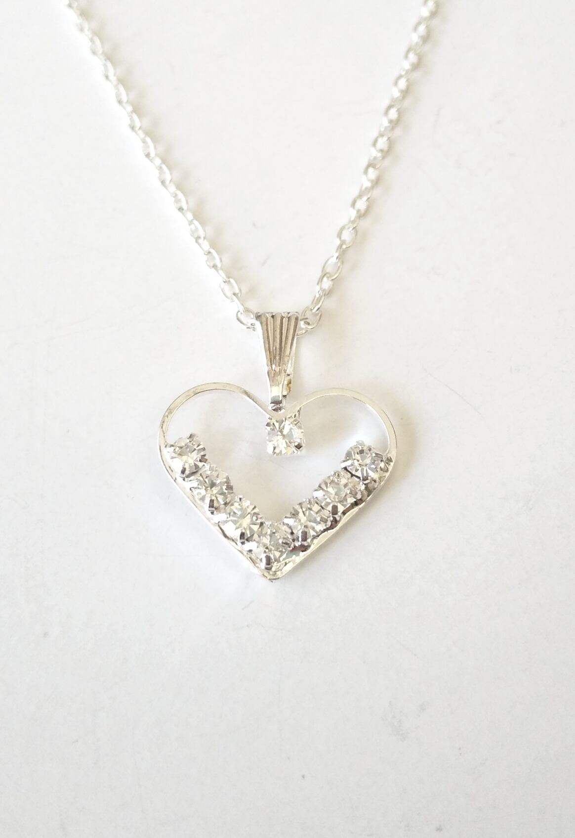レディースネックレス シルバーカラー ハート クリアカラーCZ L-810