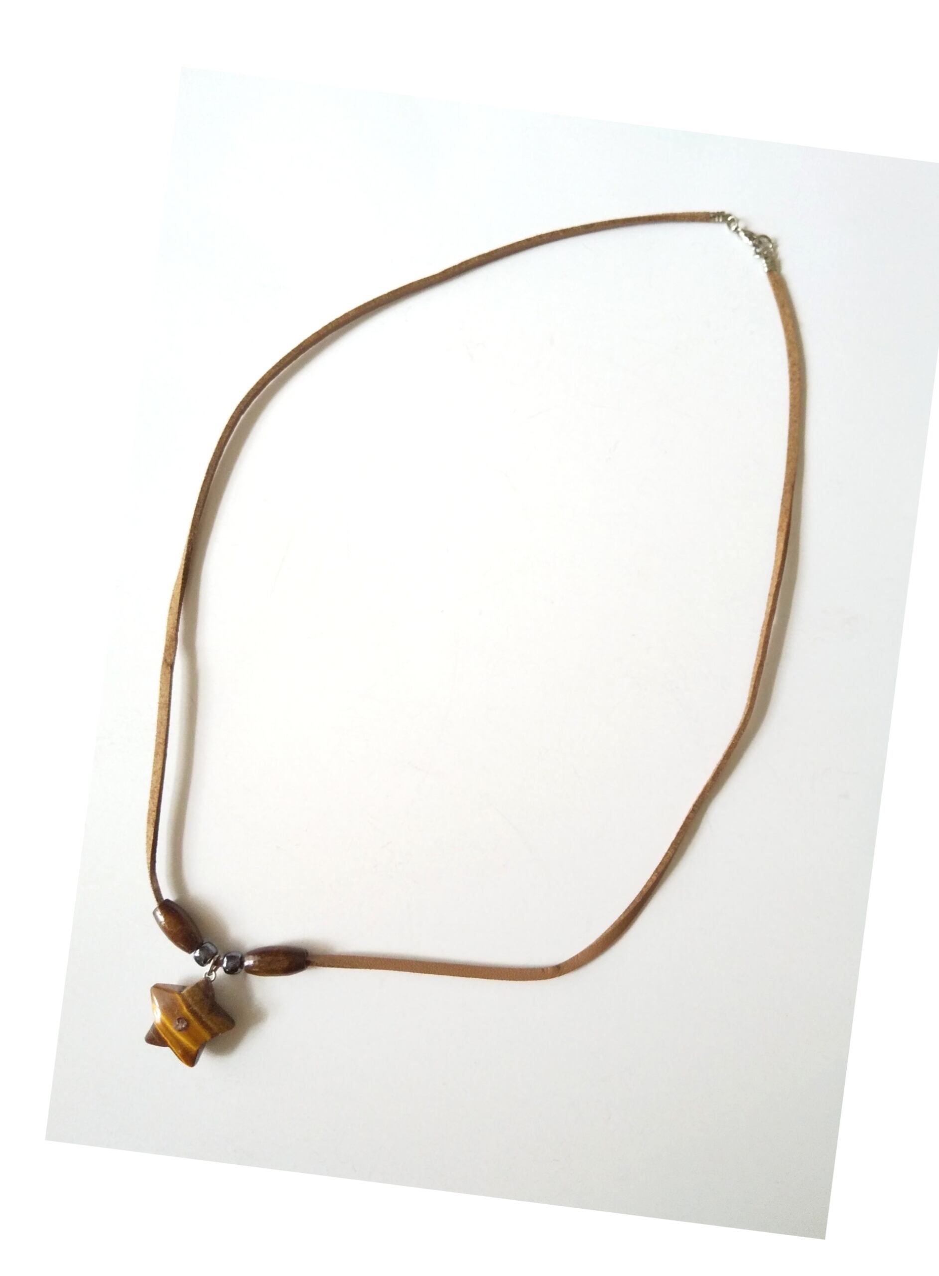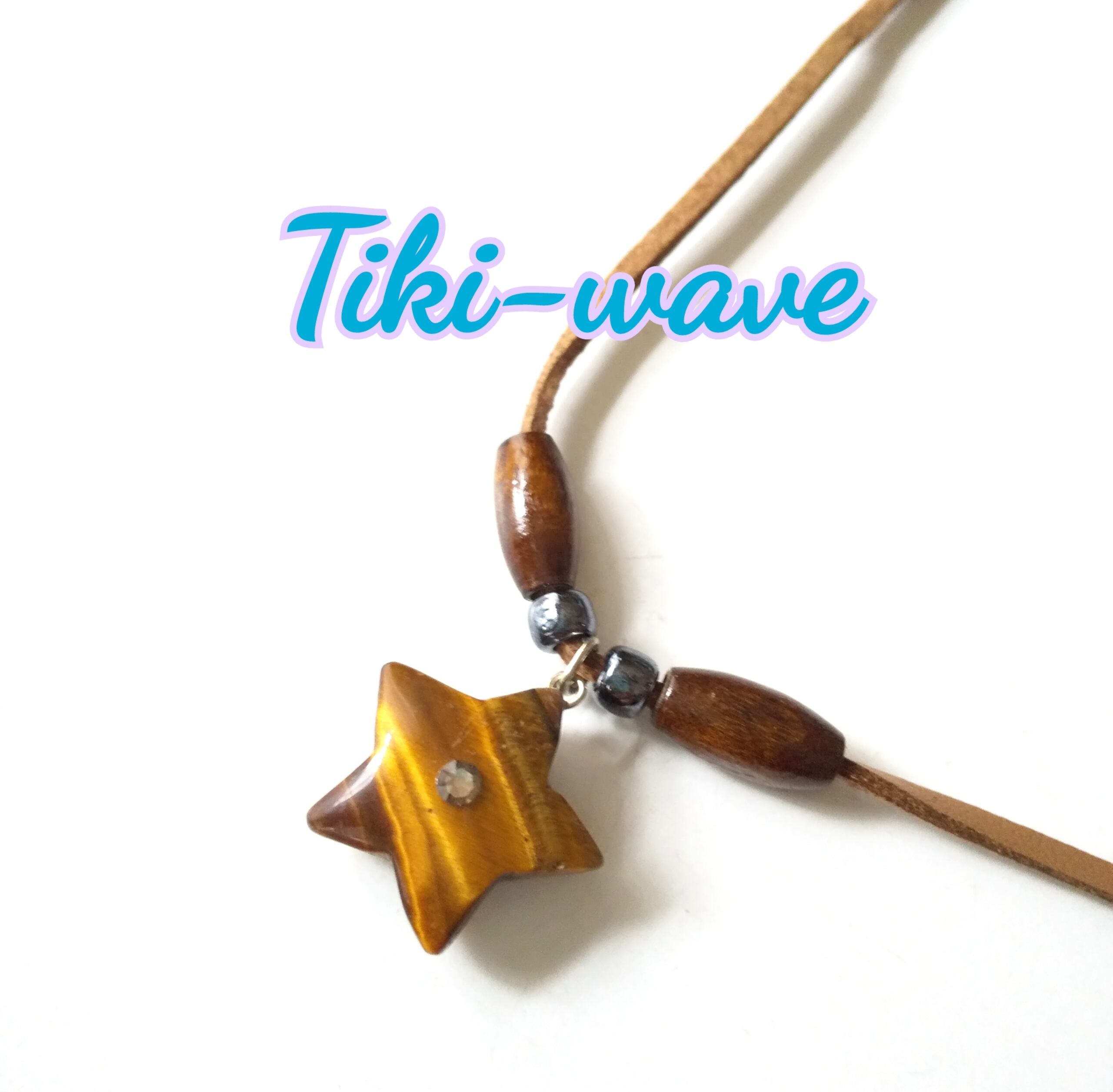 メンズ 天然石ネックレス タイガーアイ スターデザイン& 本革紐 T-800