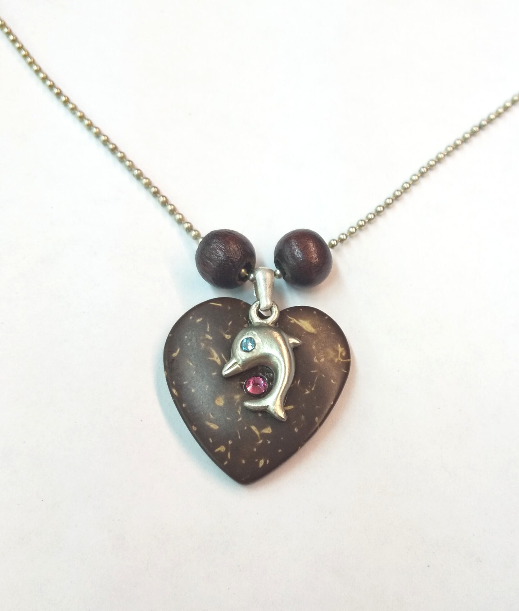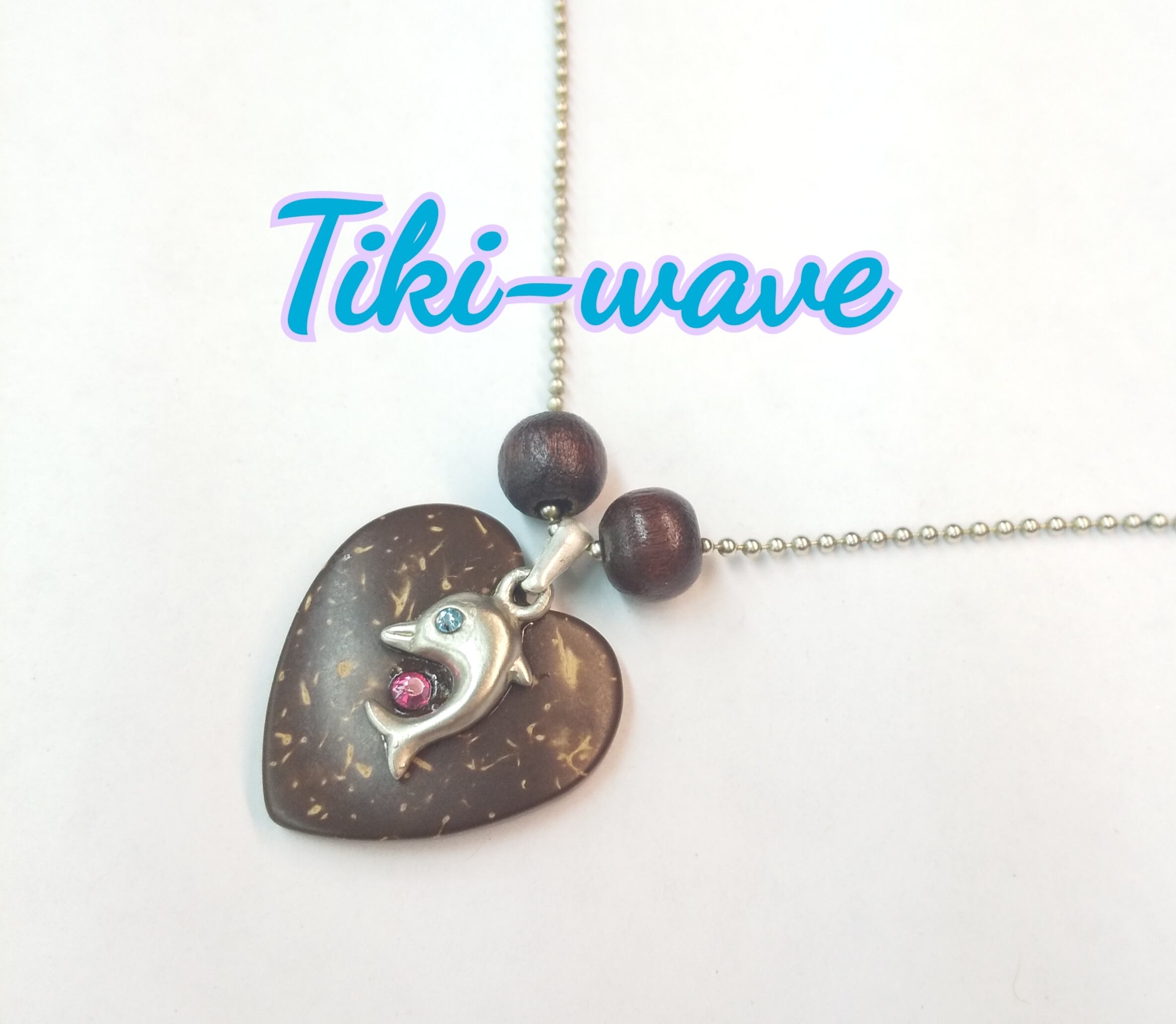 ハワイアンネックレス マッドシルバードルフィン& 椰子ハート D-209