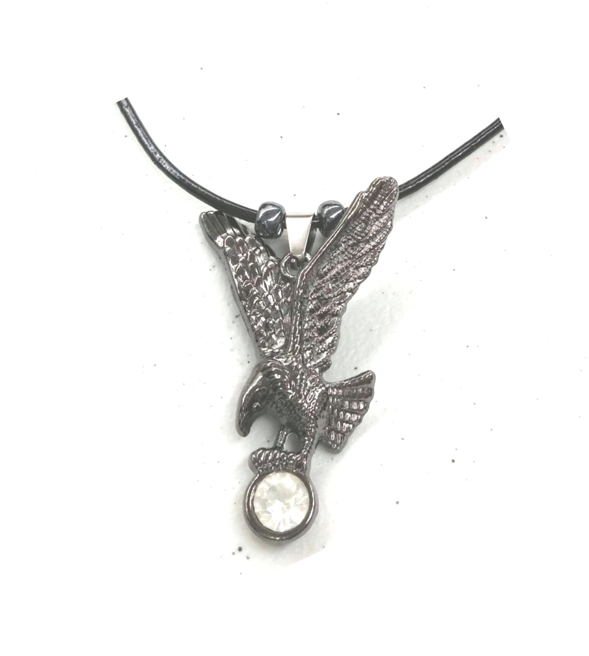 メンズネックレス ブラックニッケルイーグル& CZ 本革紐 Y-406