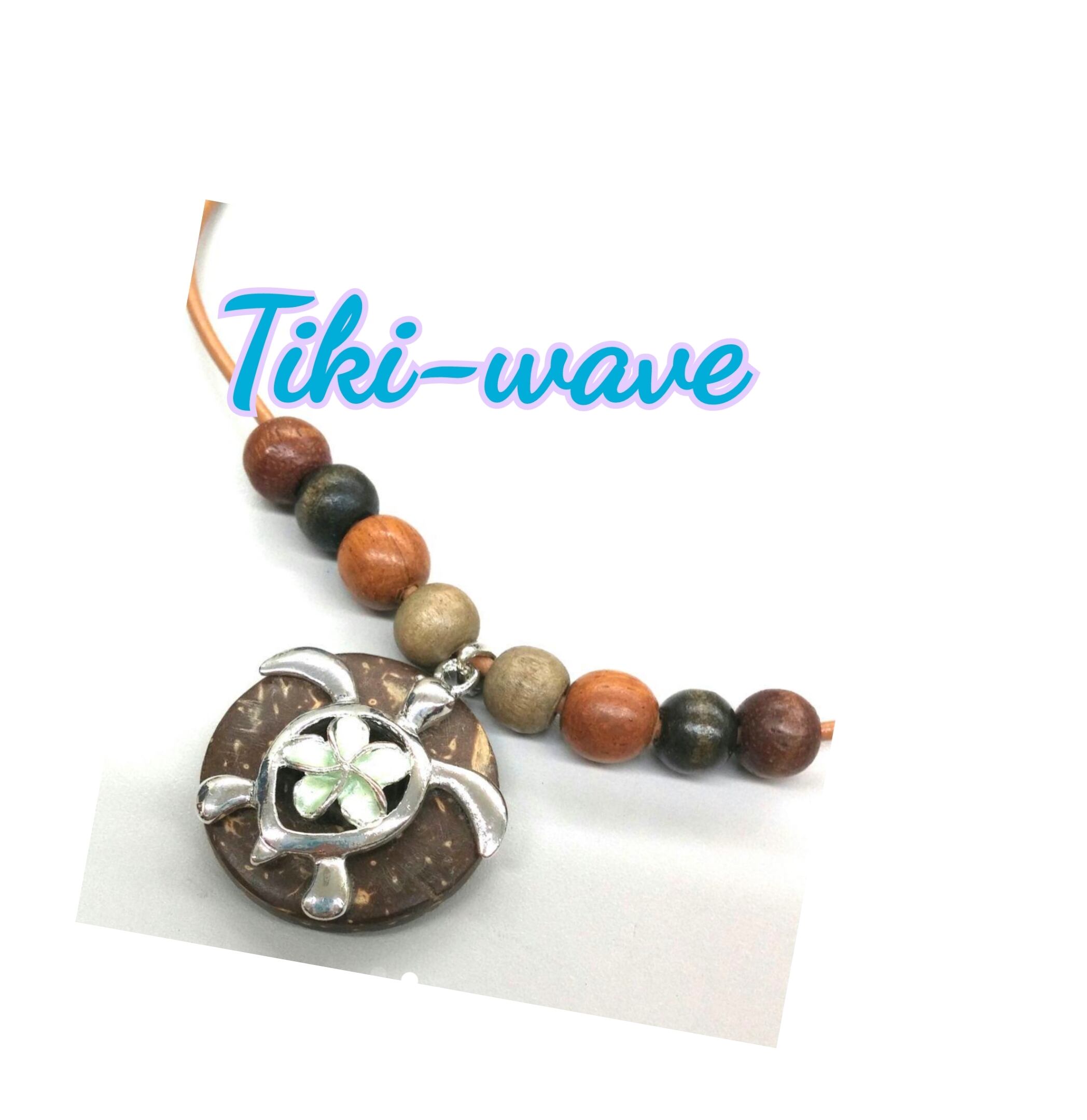 ハワイアンネックレス シルバーホヌ&椰子ウッド 本革紐 Y-105