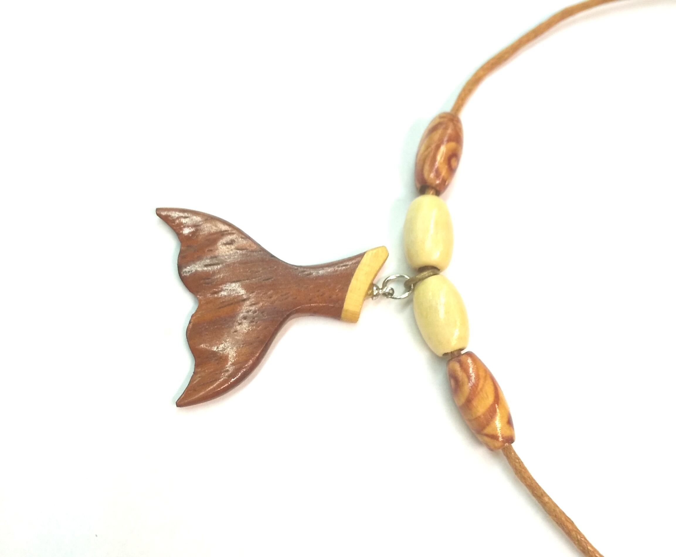ハワイアンネックレス ウッドホエールテール& コットン紐椰 D-210