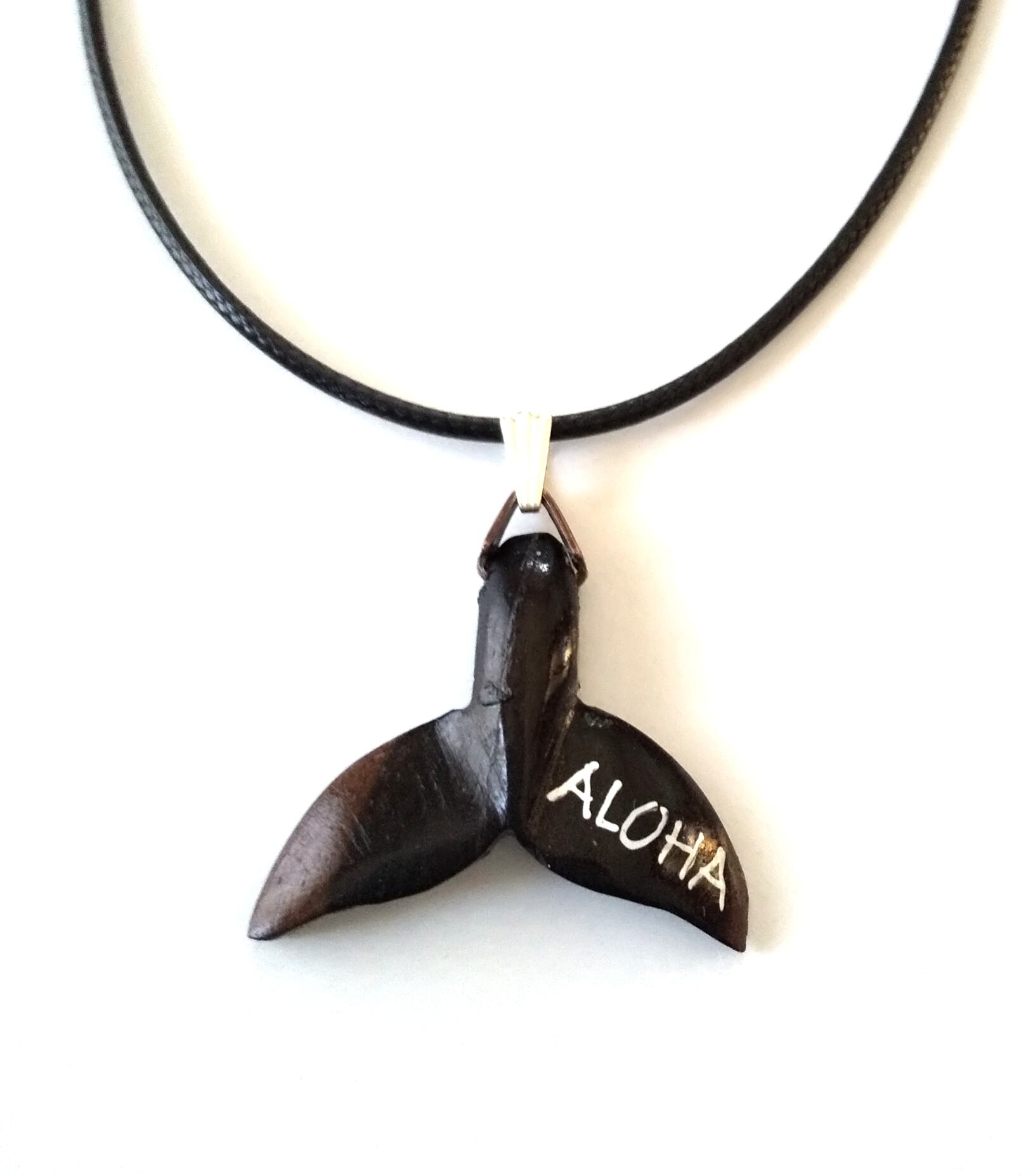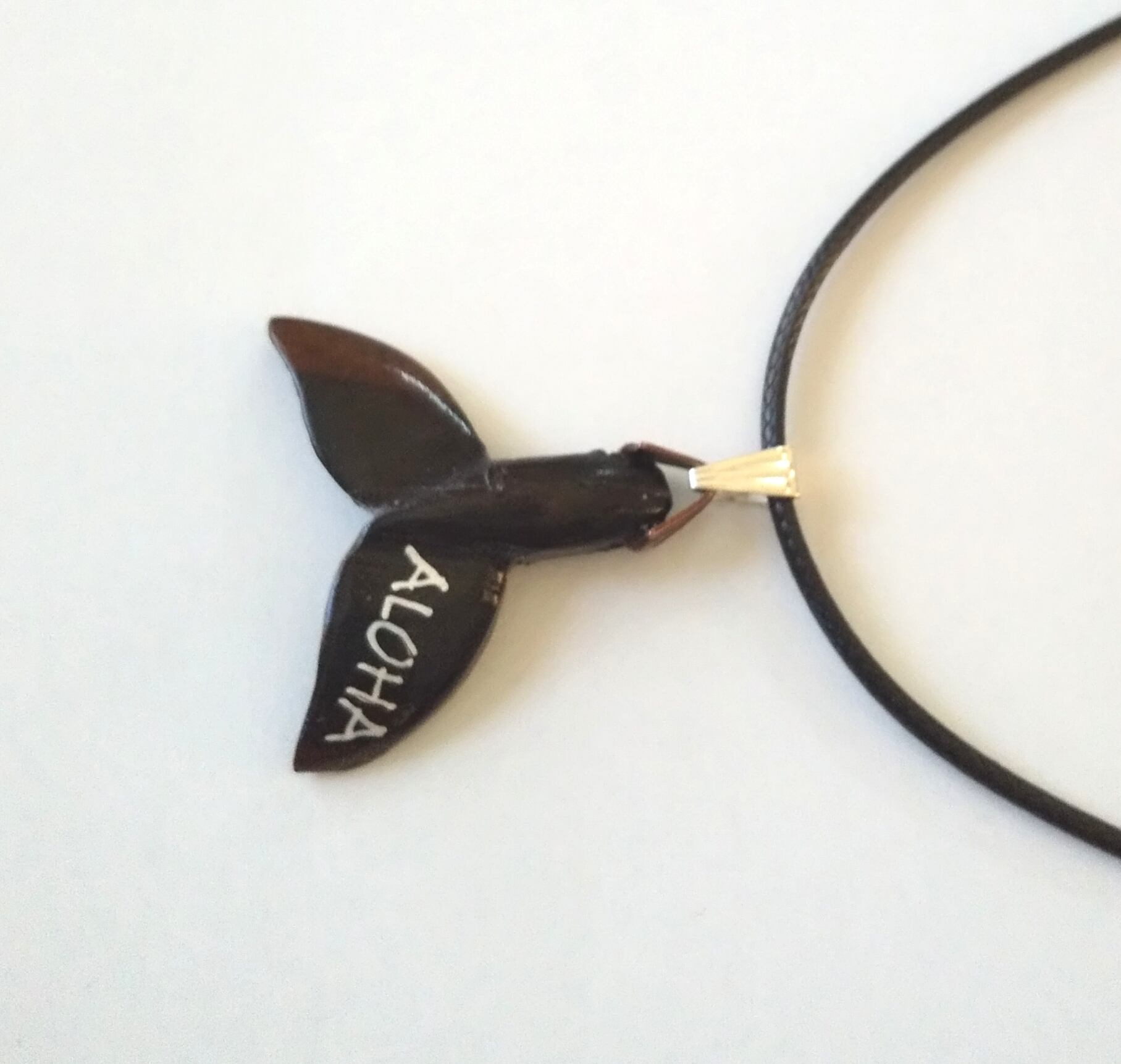 ハワイアンネックレス ブラックウッドホエールテール ALOHA D-211