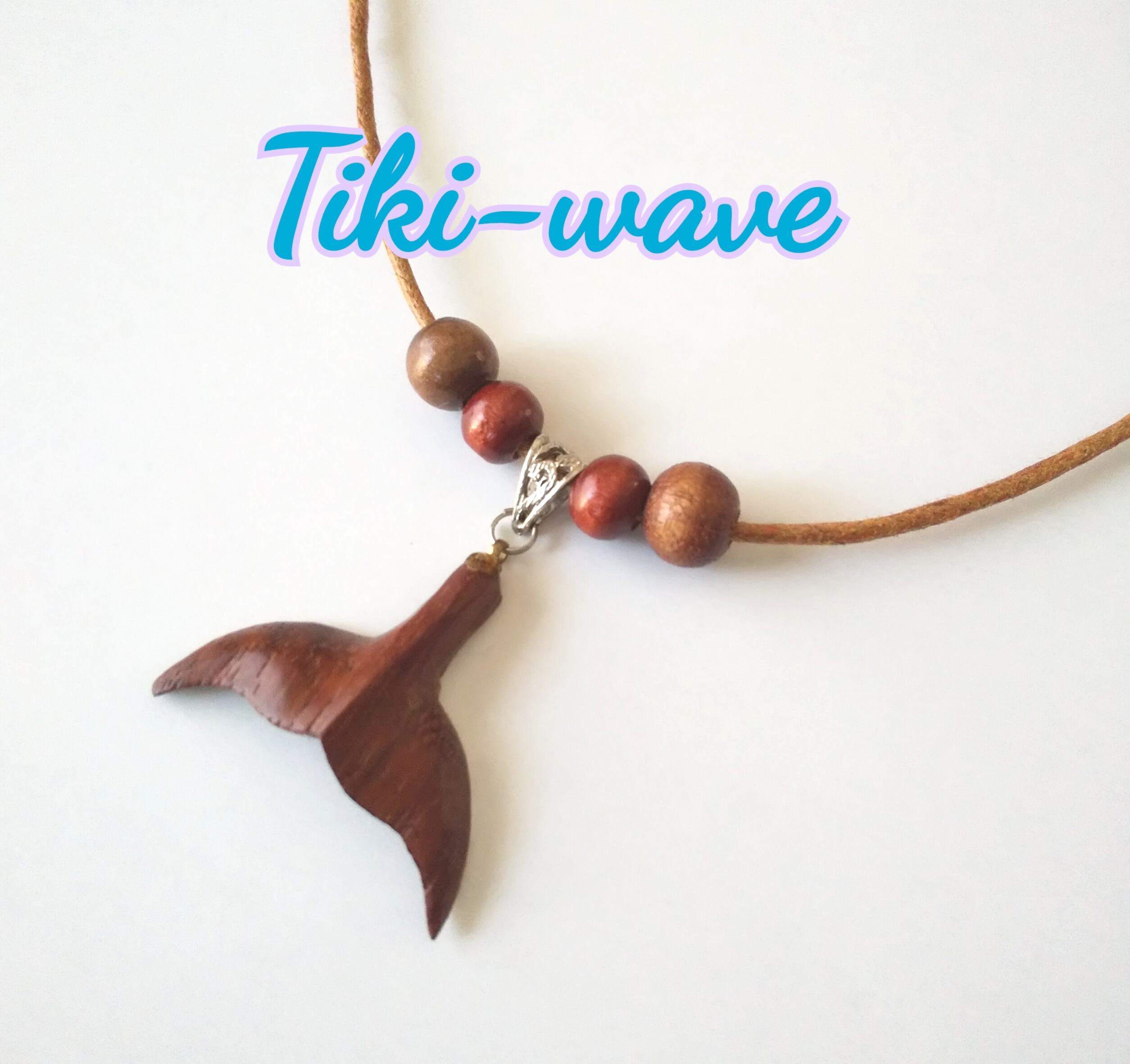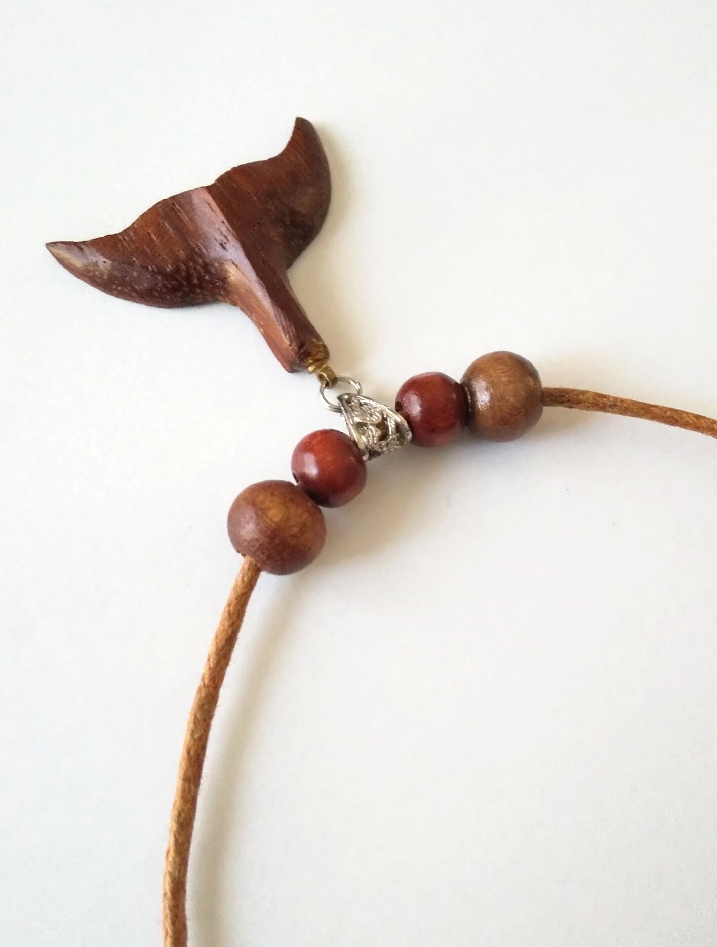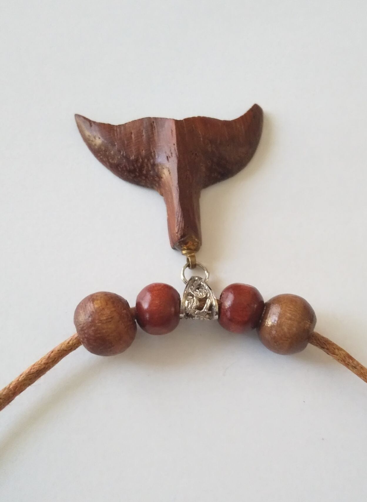 ハワイアンネックレス ハワイウッドホエールテール& コットン紐 D-212