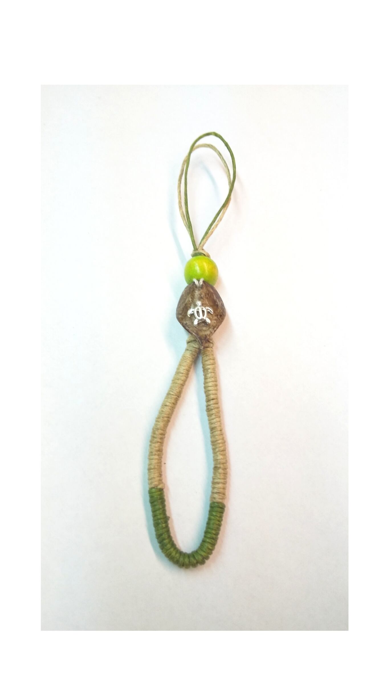 ハワイアンストラップ 天然椰子とシルバーホヌの 麻紐ストラップ T-204