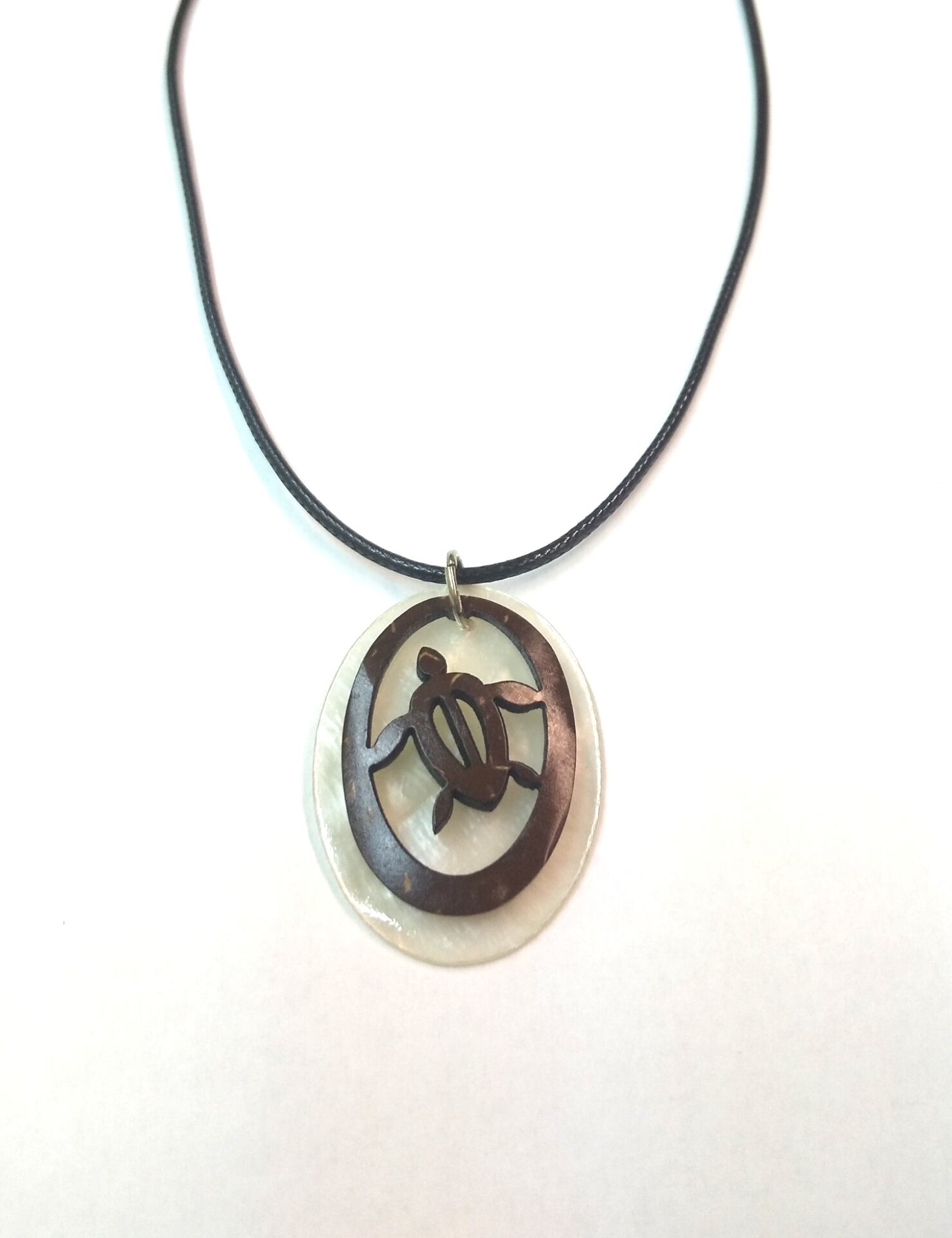 ハワイアンネックレス ホワイトカラーシェル& 椰子ウッドホヌ H-102