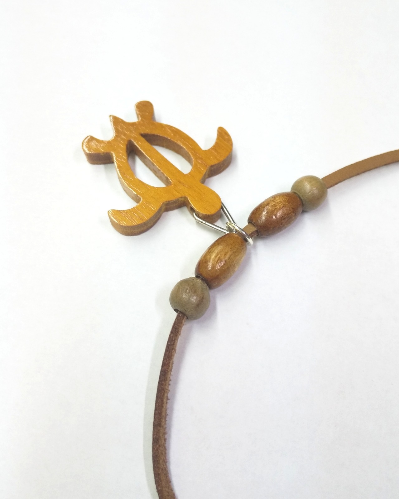 ハワイアンネックレス 天然ウッドホヌ& ブラウン革紐 H-104