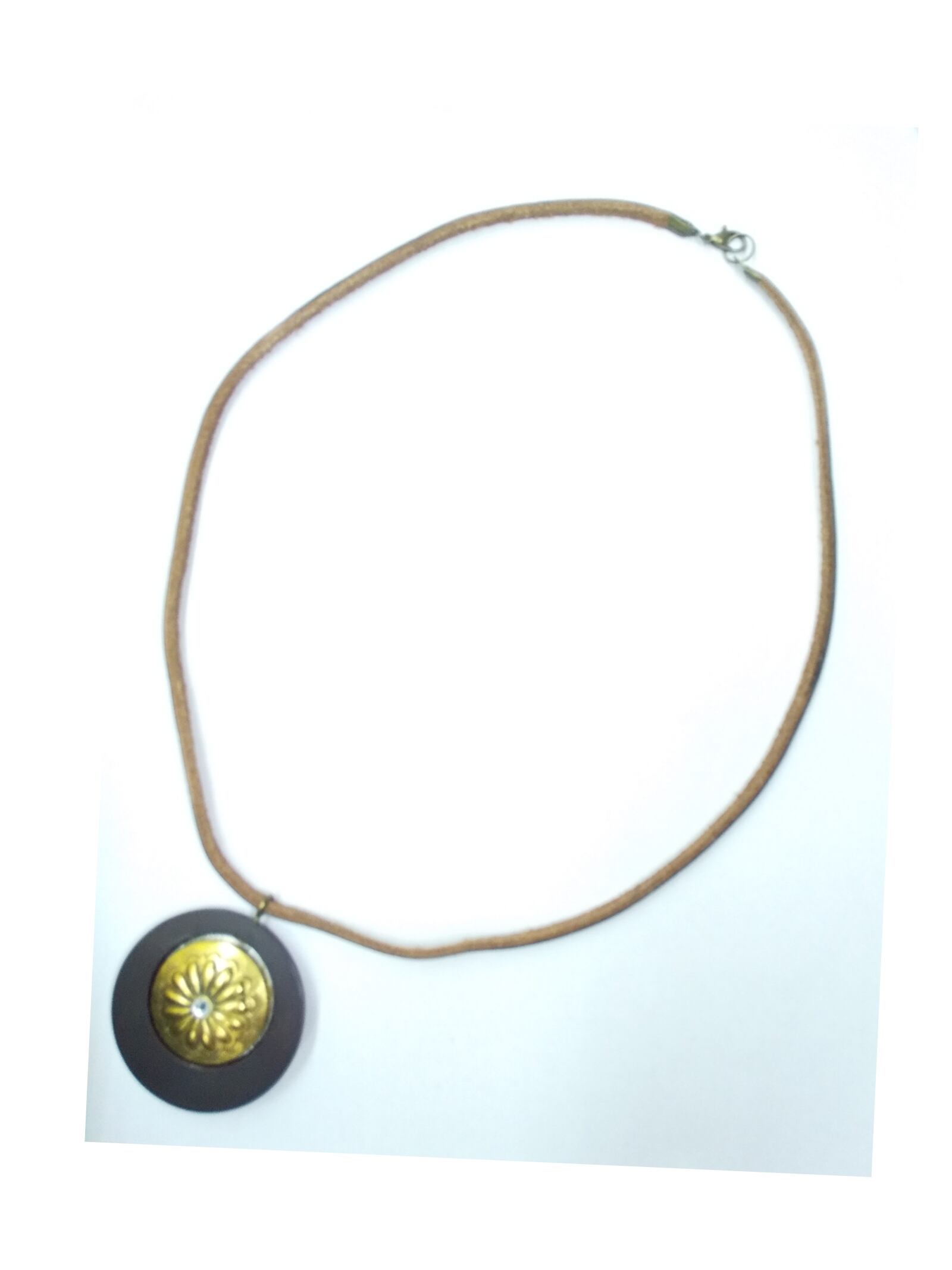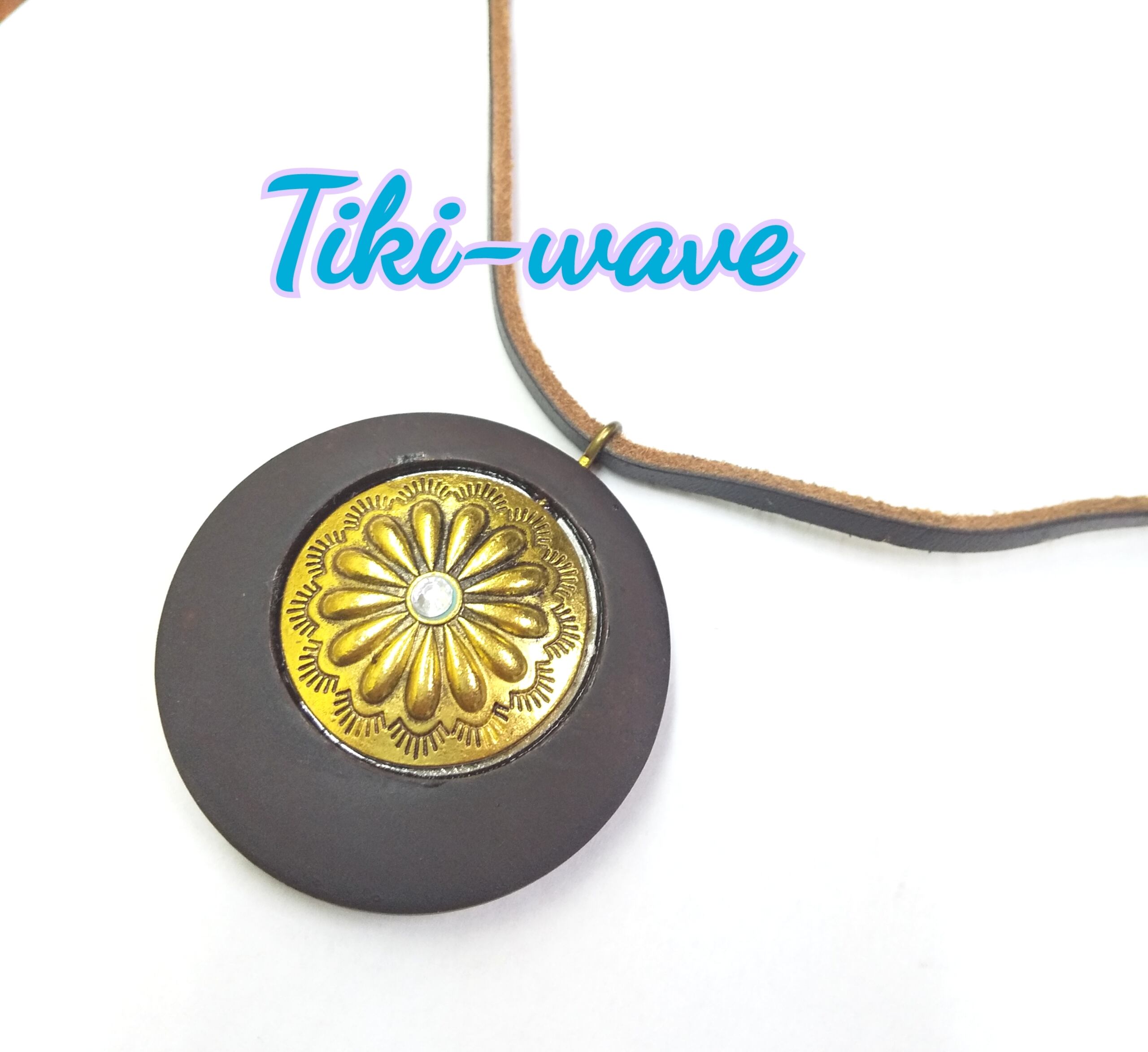 メンズネックレス 天然サークルウッド& 菊紋章ゴールドコンチョ Y-652