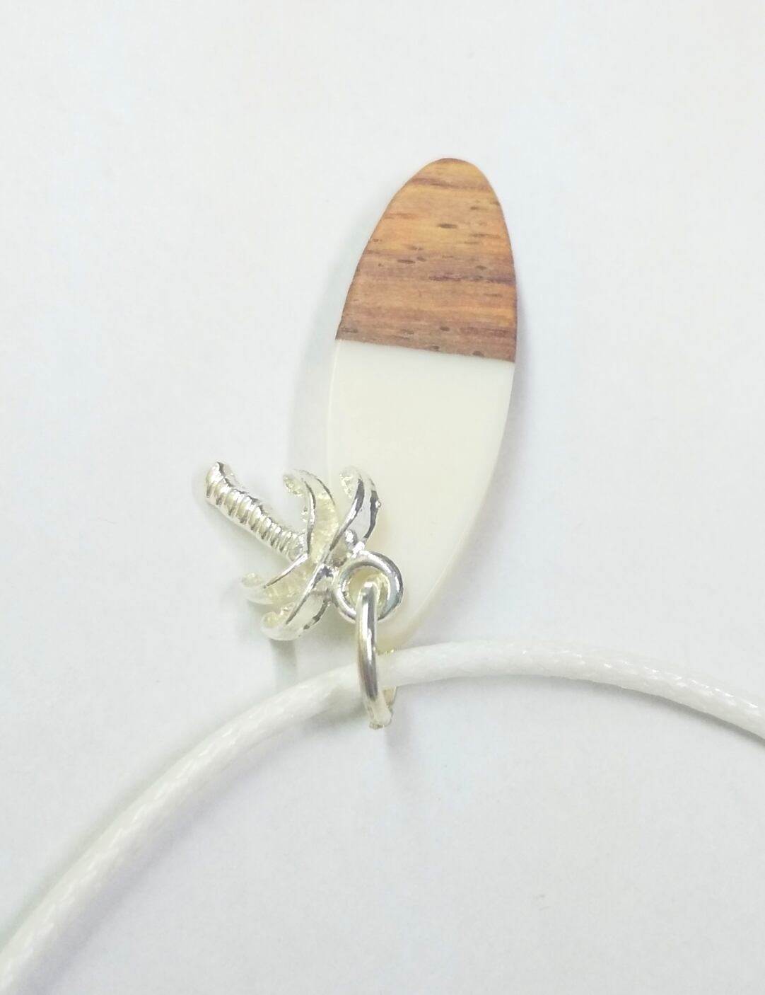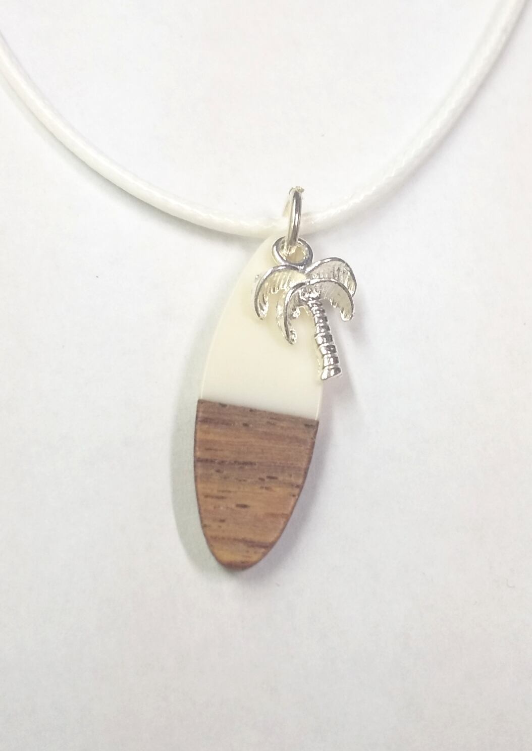 ハワイアンネックレス ホワイト&ウッドボード シルバーヤシ U-502
