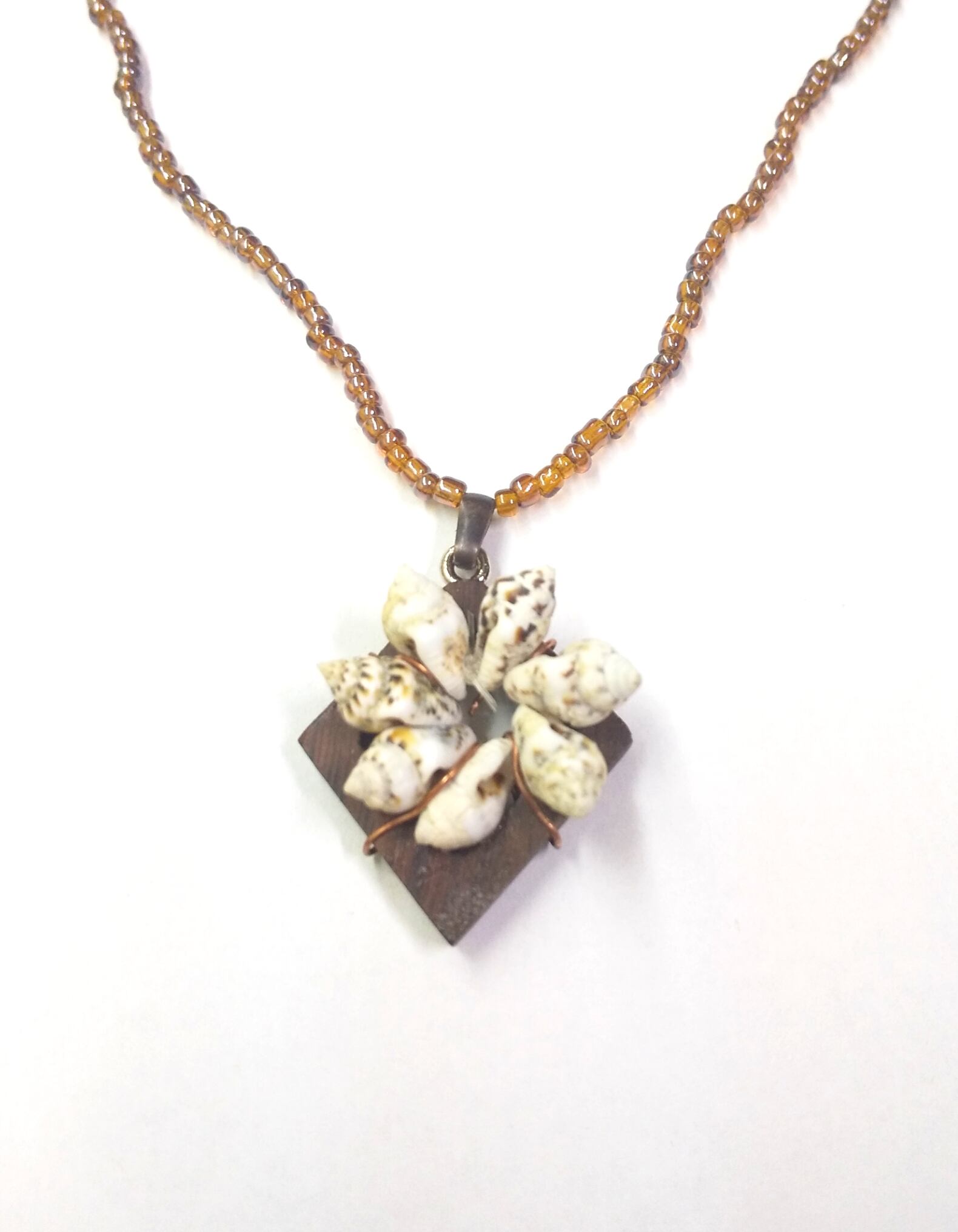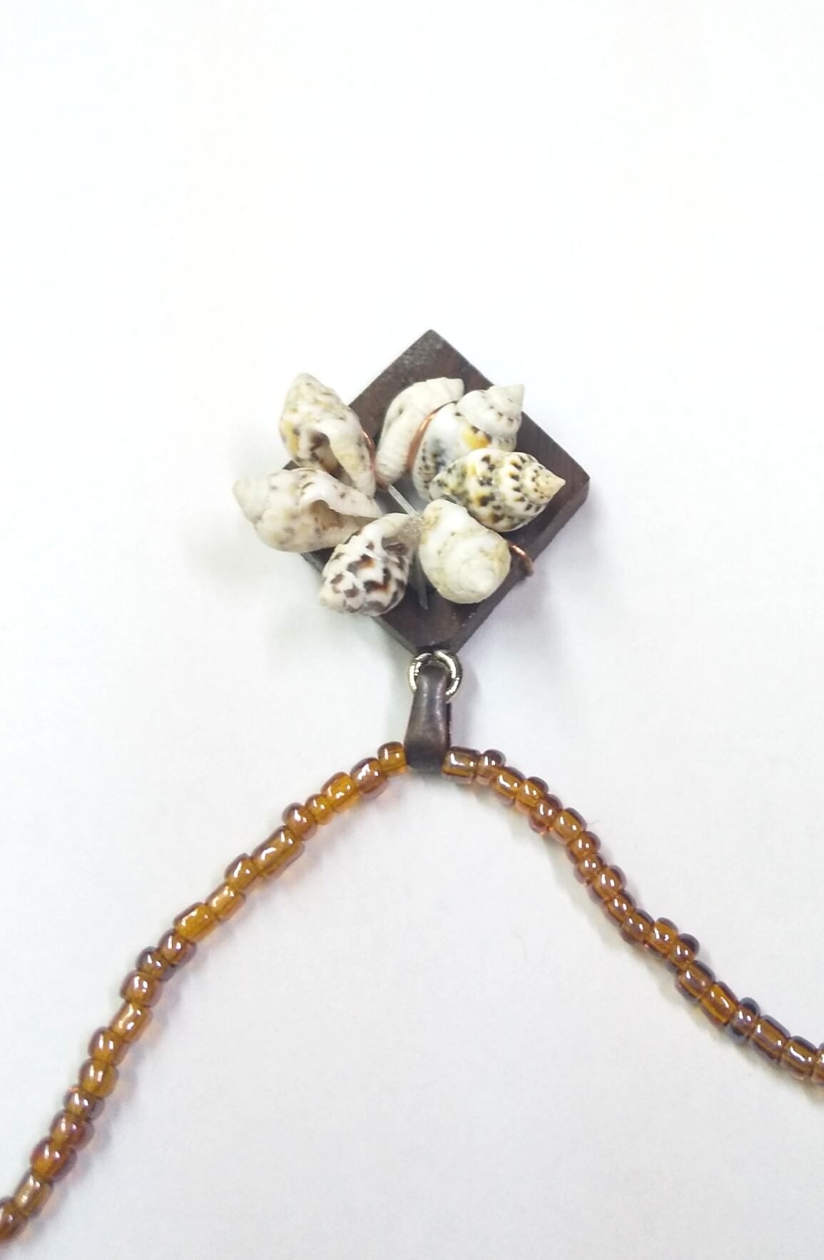 ハワイアンネックレス 天然モンゴシェル&ウッド ブラウンビーズ U-312