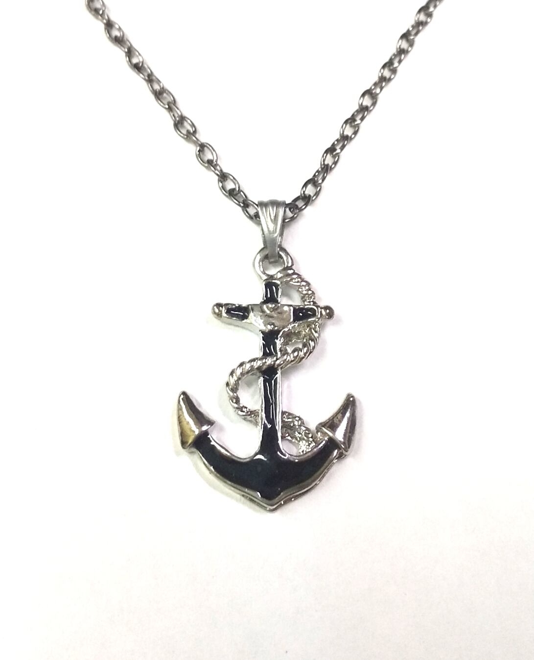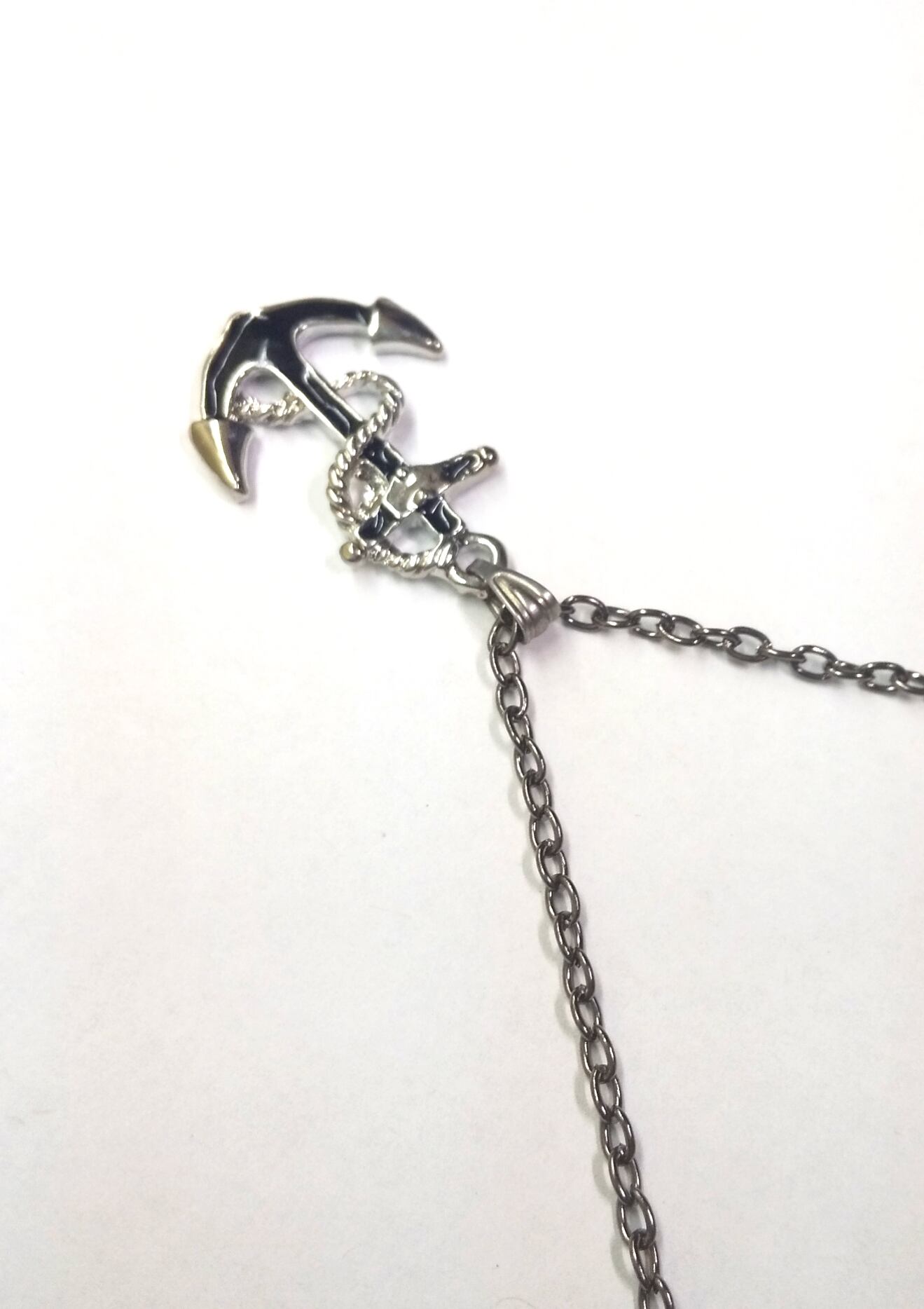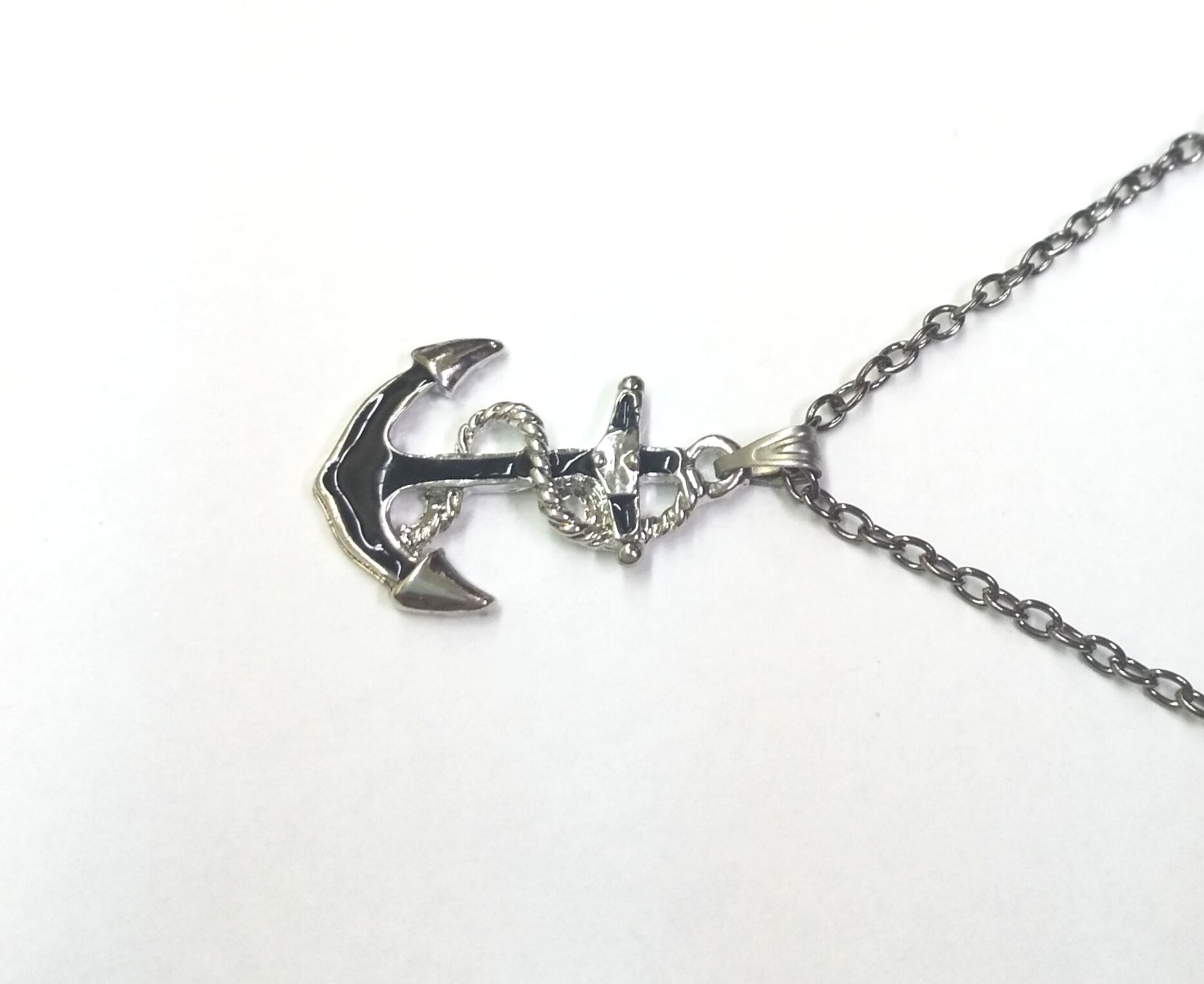 メンズネックレス シルバー&ネイビーブルーカラー アンカー 碇 Y-455
