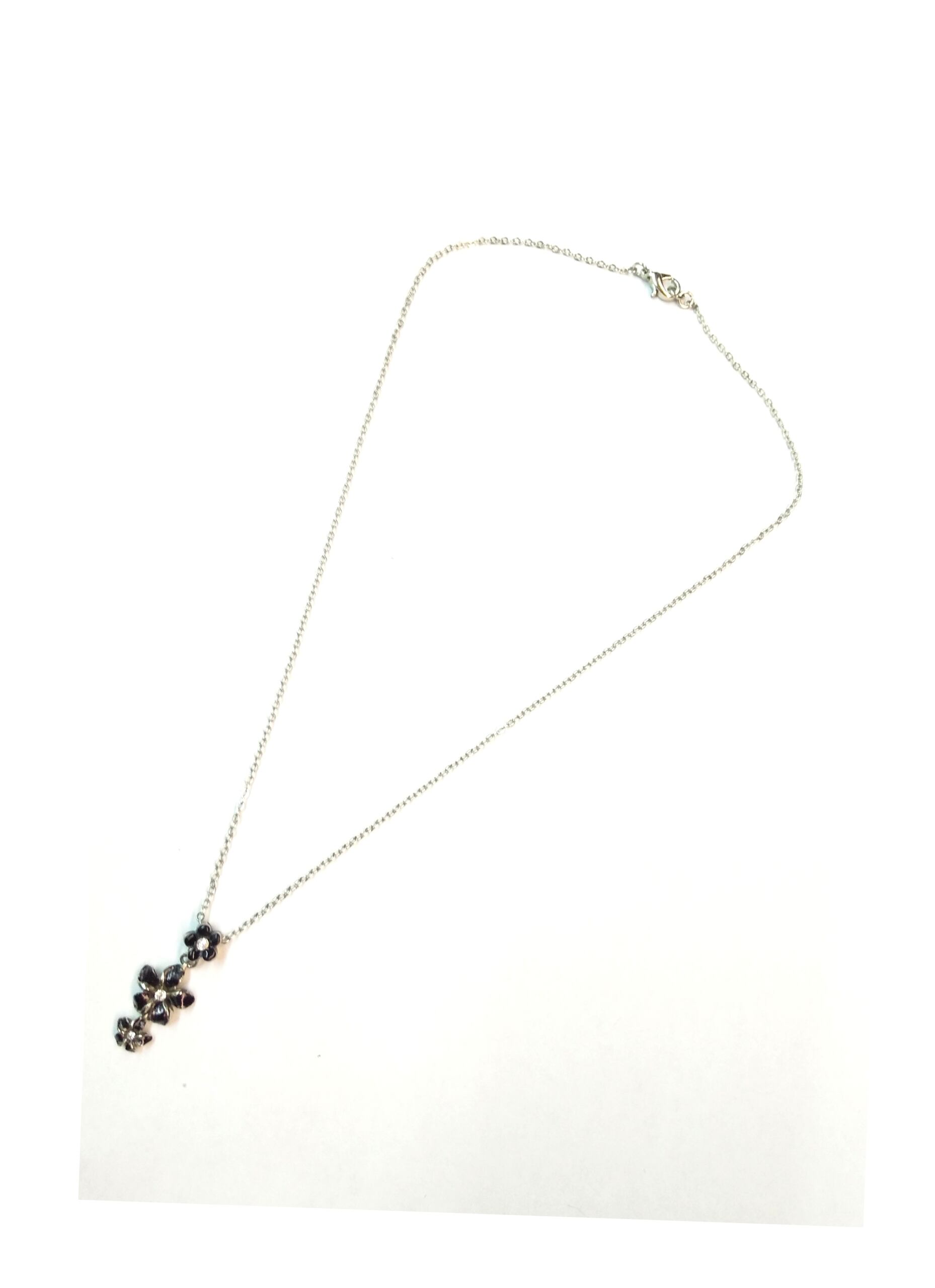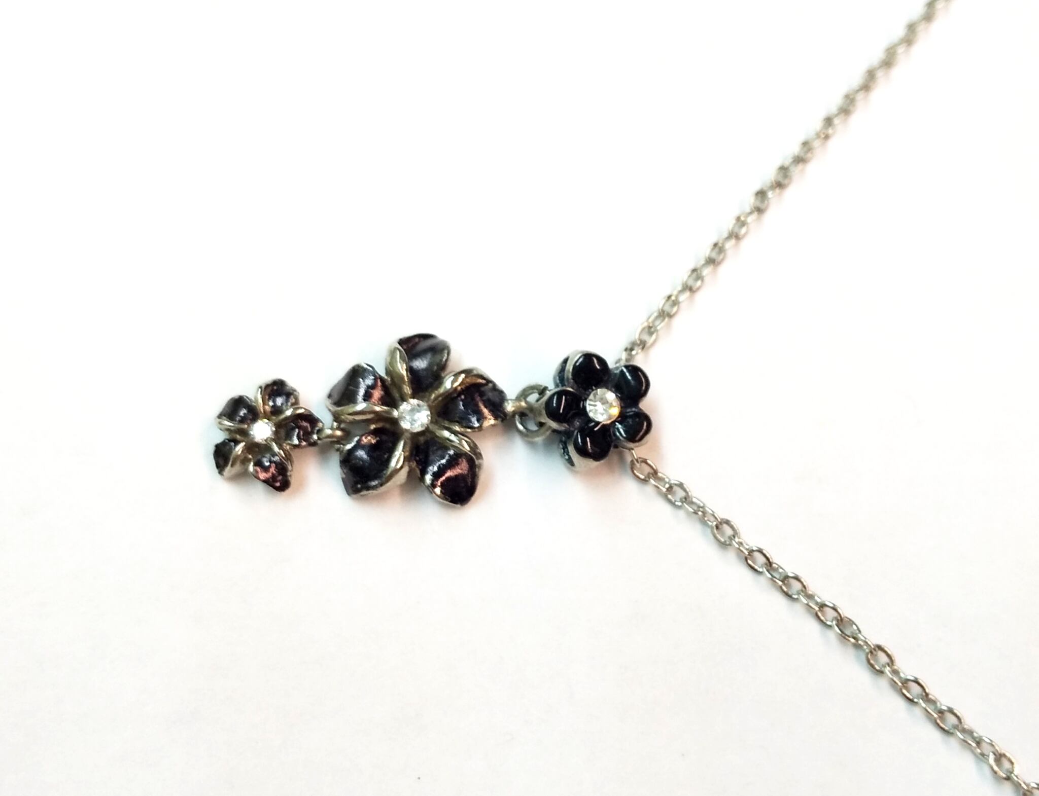 ハワイアンネックレス 3連シルバー&ブラックカラー プルメリア P-617