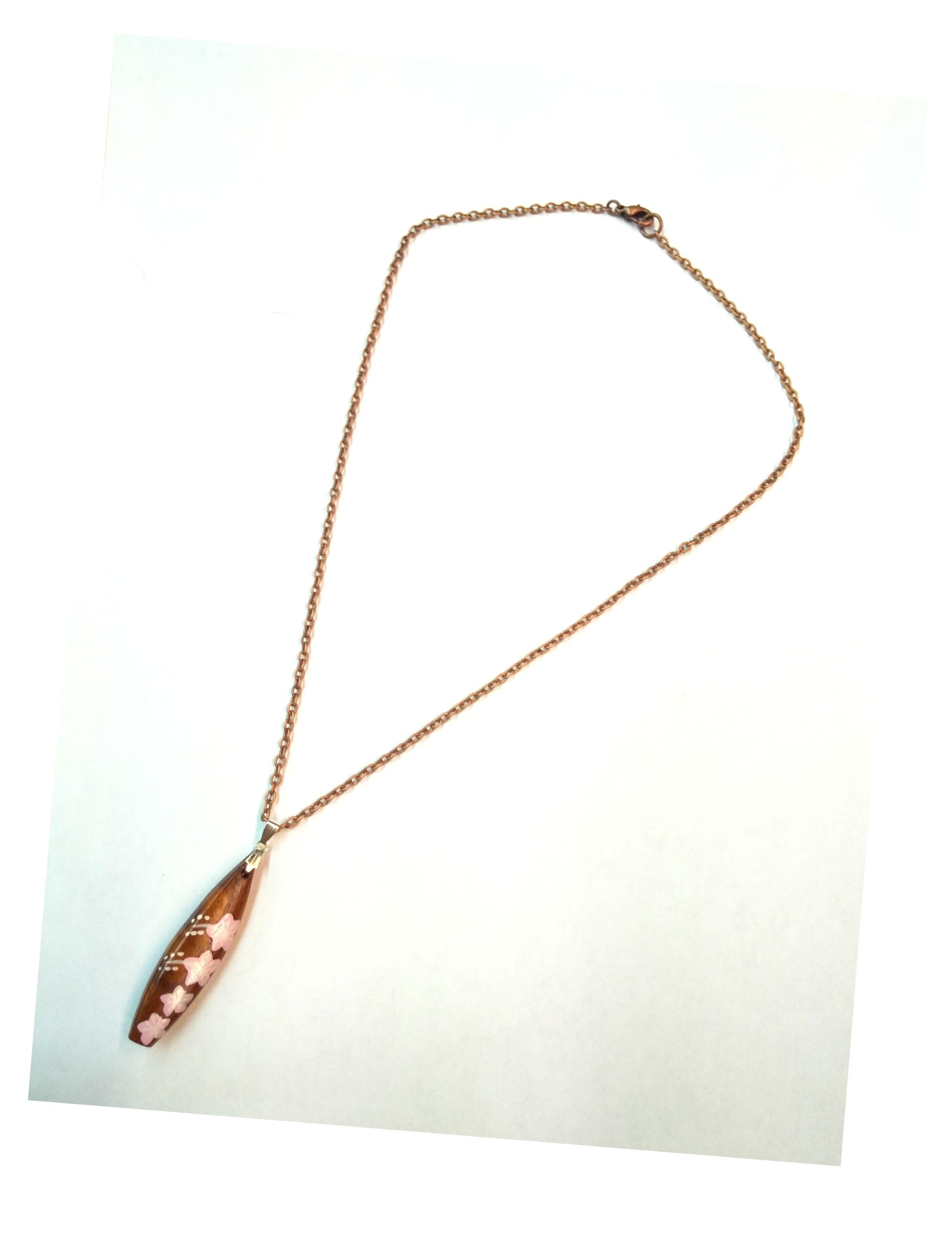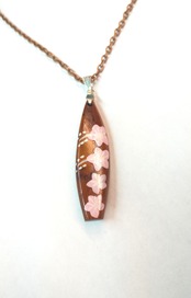 ハワイアンネックレス 天然ウッドサーフボード ピンクプルメリア B-304