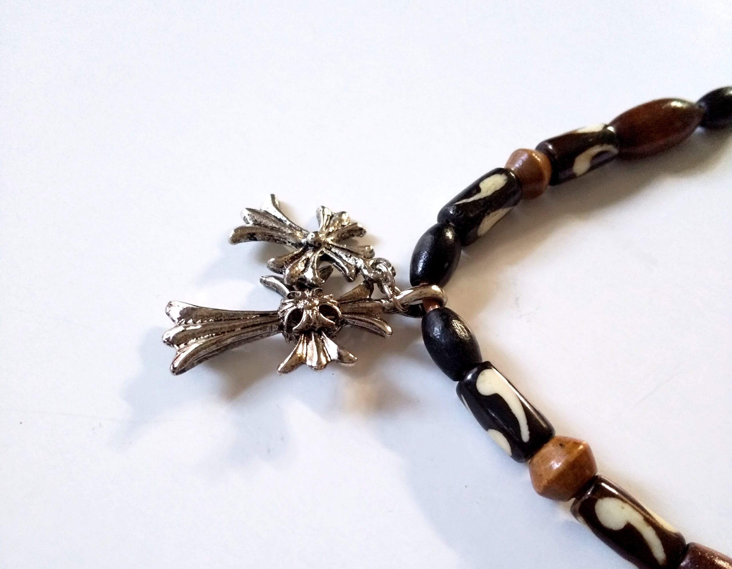 メンズネックレス シルバーWジャーマンクロス& バッファローボーン Y-603
