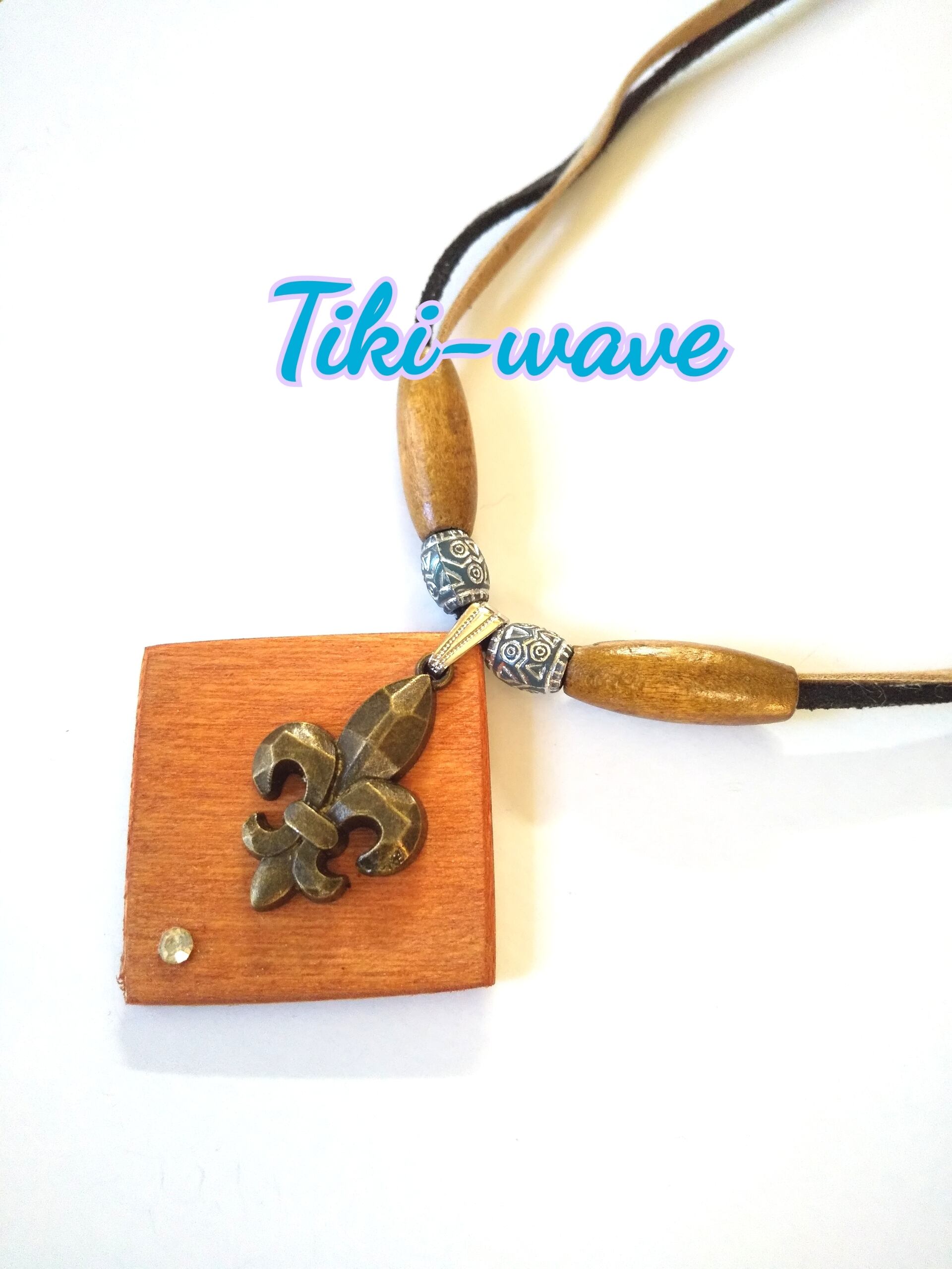 メンズネックレス 金古美 百合の紋章& ウッドプレート Y-653