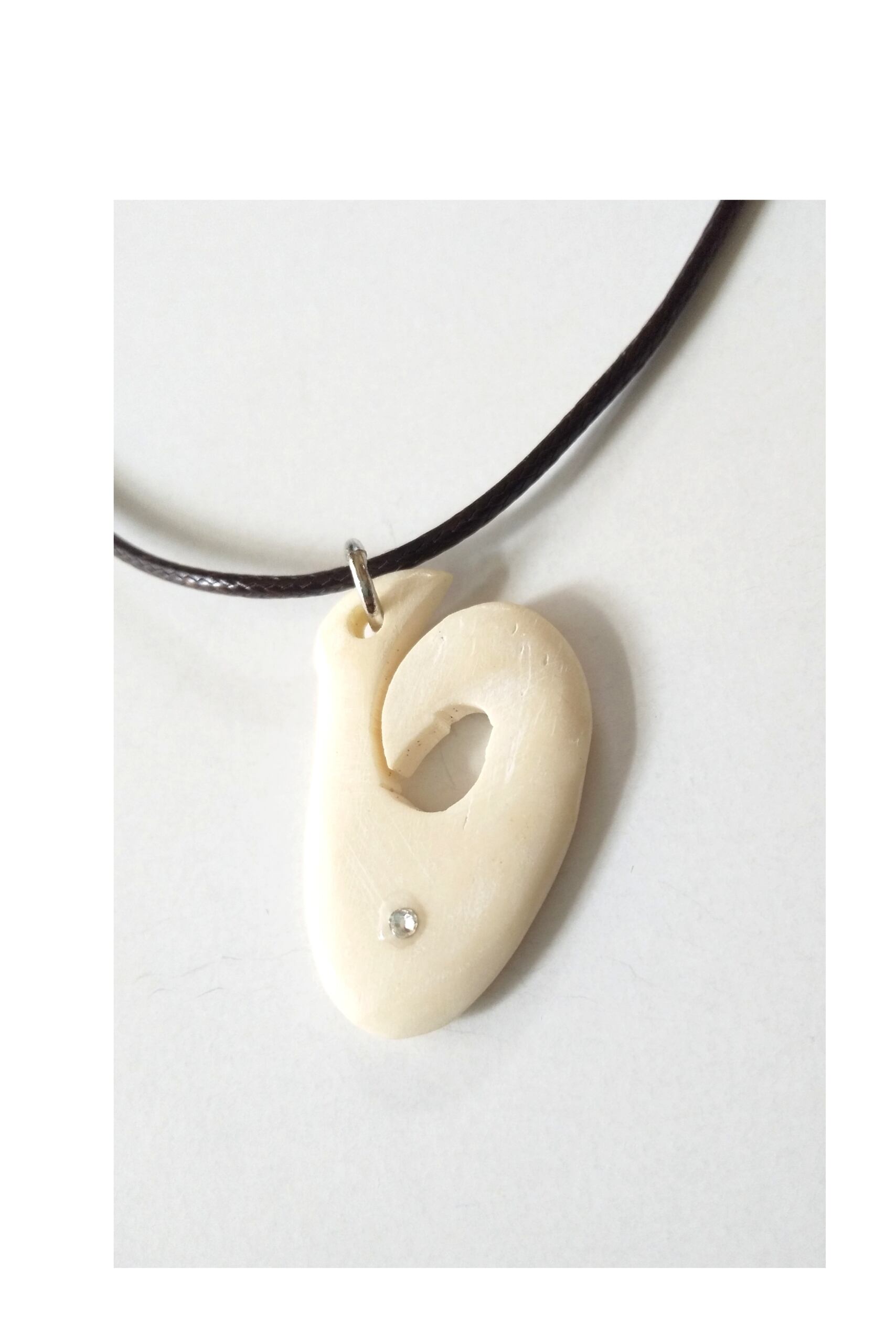 ハワイアンネックレス ホワイトカラーボーン フィッシュフック F-101