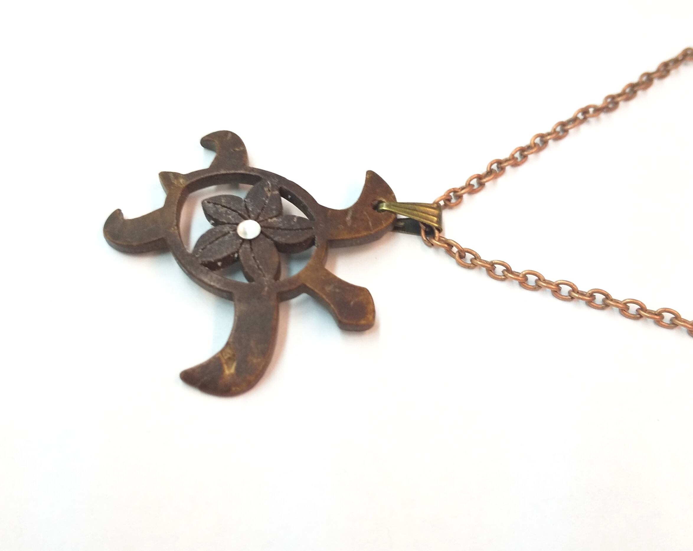 ハワイアンネックレス ウッド ホヌ 海亀 & プルメリア H-106