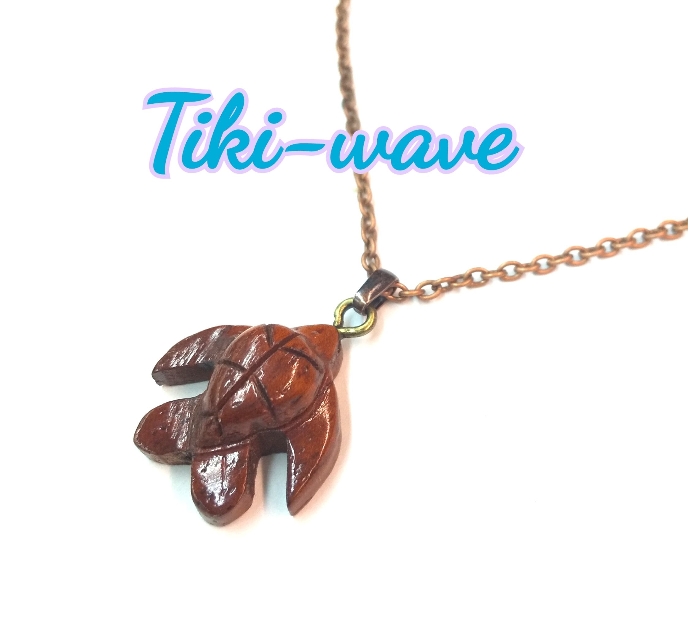 ハワイアンネックレス 天然ウッド ホヌ 海亀& ブロンズチェーン H-107