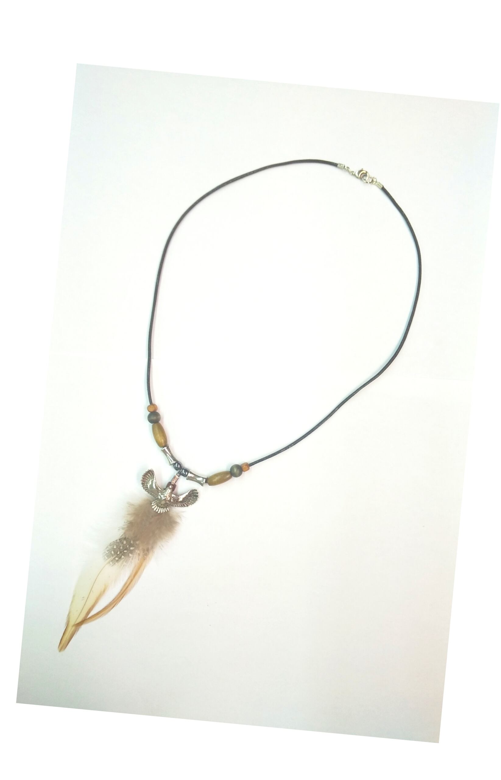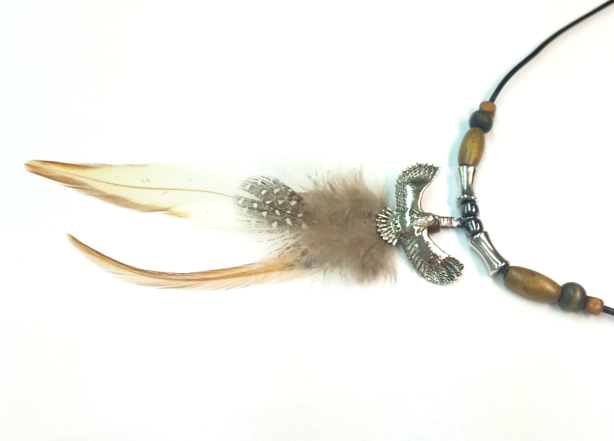 メンズネックレス シルバーイーグル& ロングフェザー 本革紐 Y-506