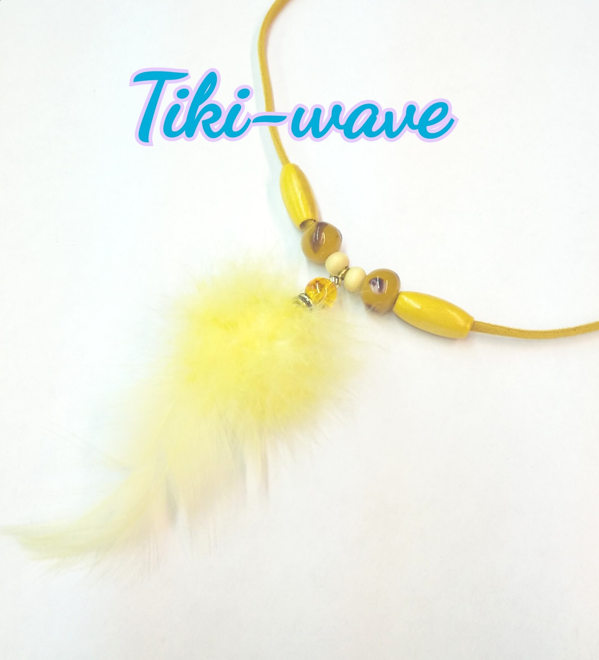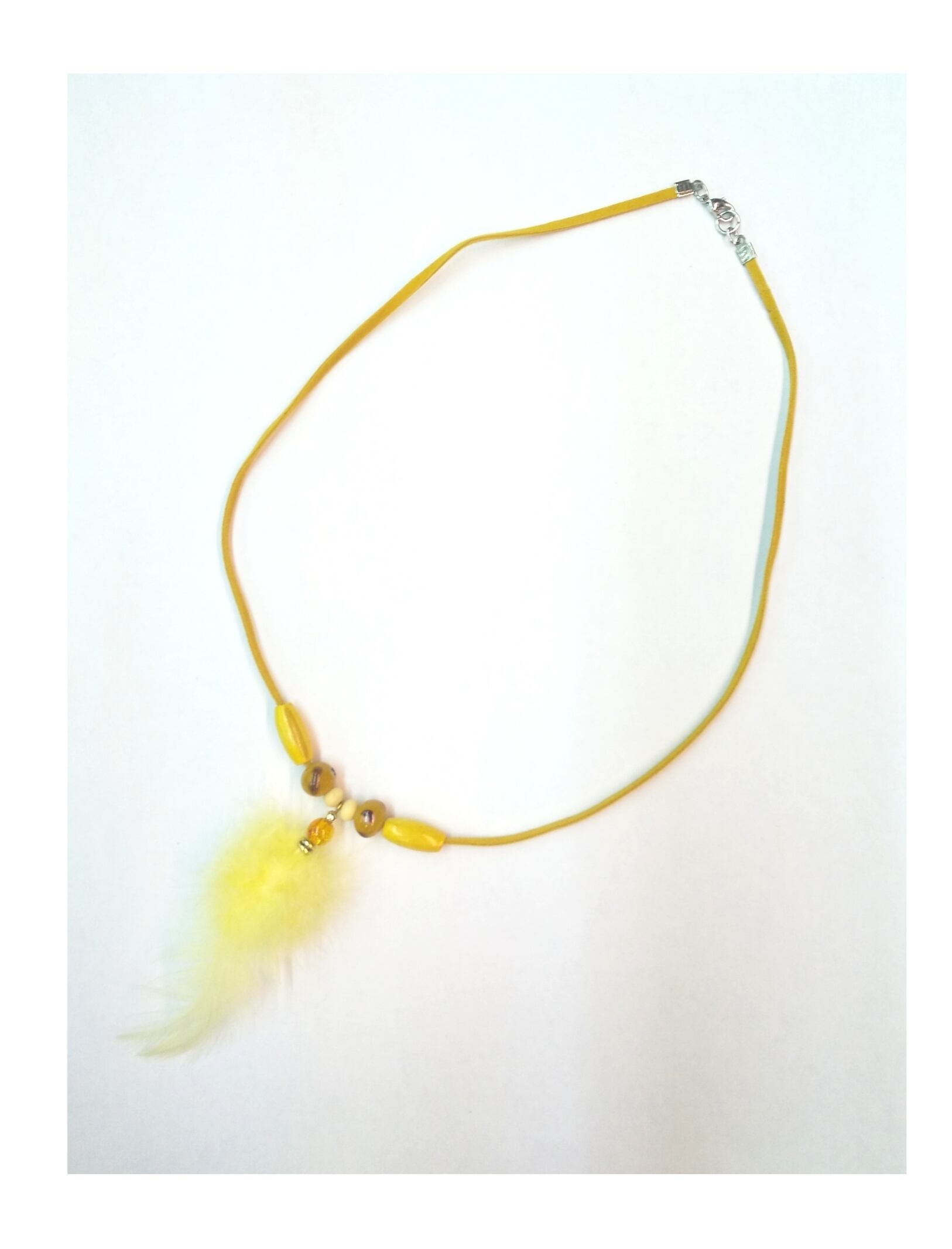 レディースネックレス イエローカラーナチュラルフェザー&スエード紐 L-820