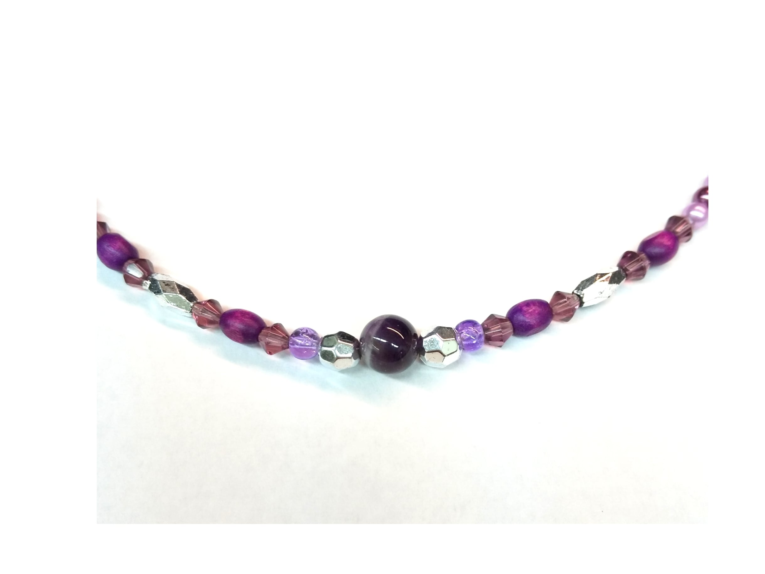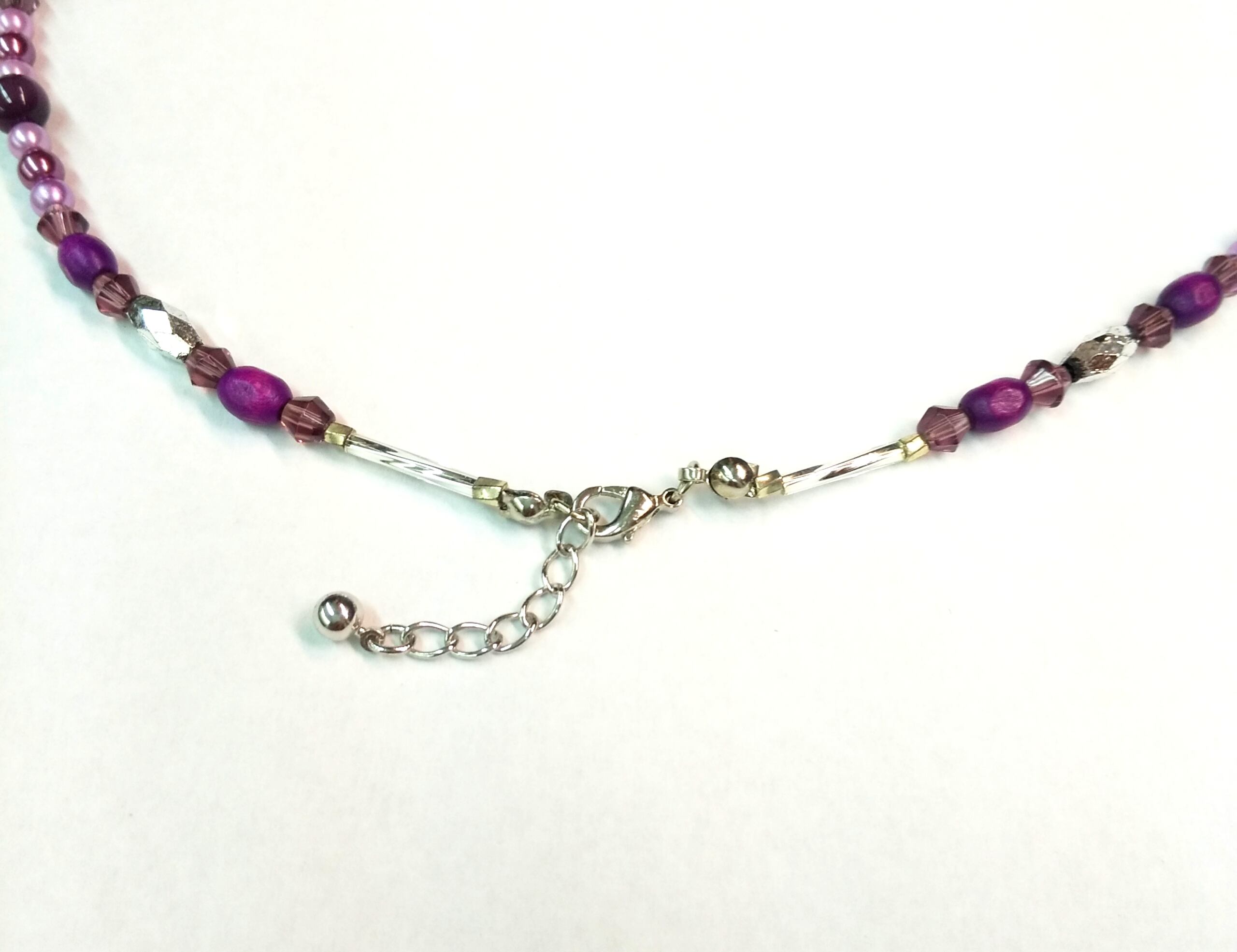 レディースネックレス セミロング アメジスト&パープルウッド T-707