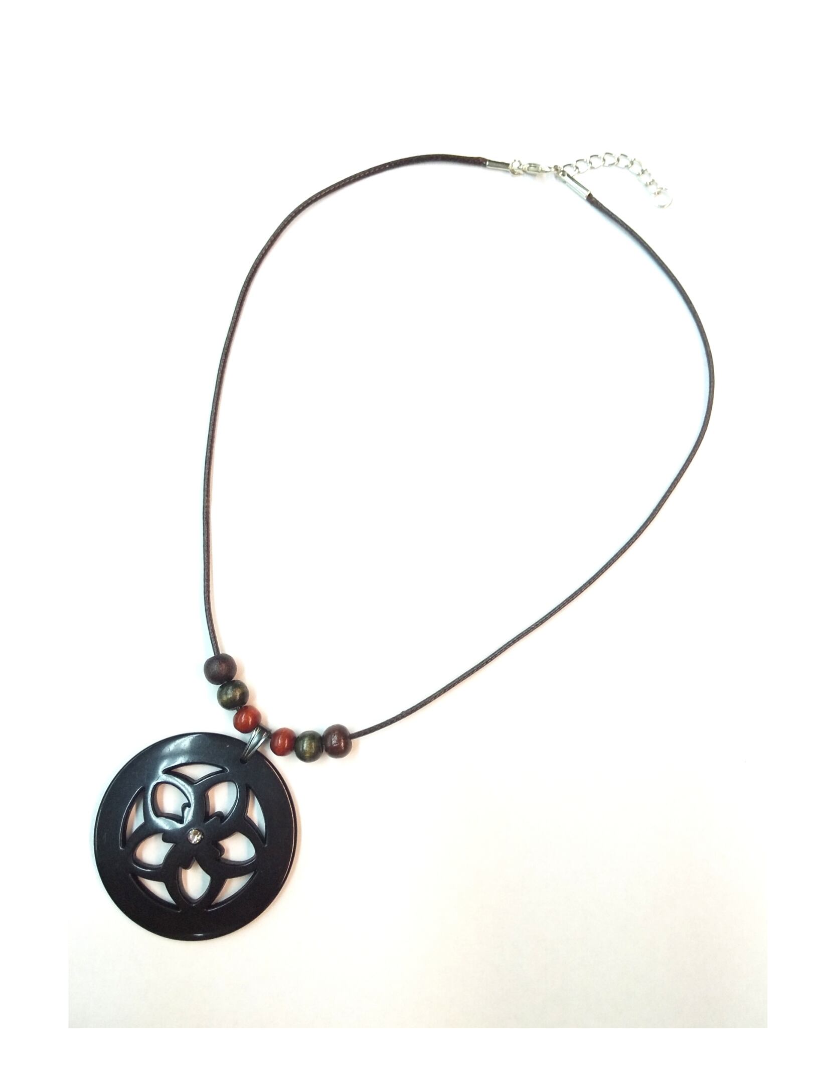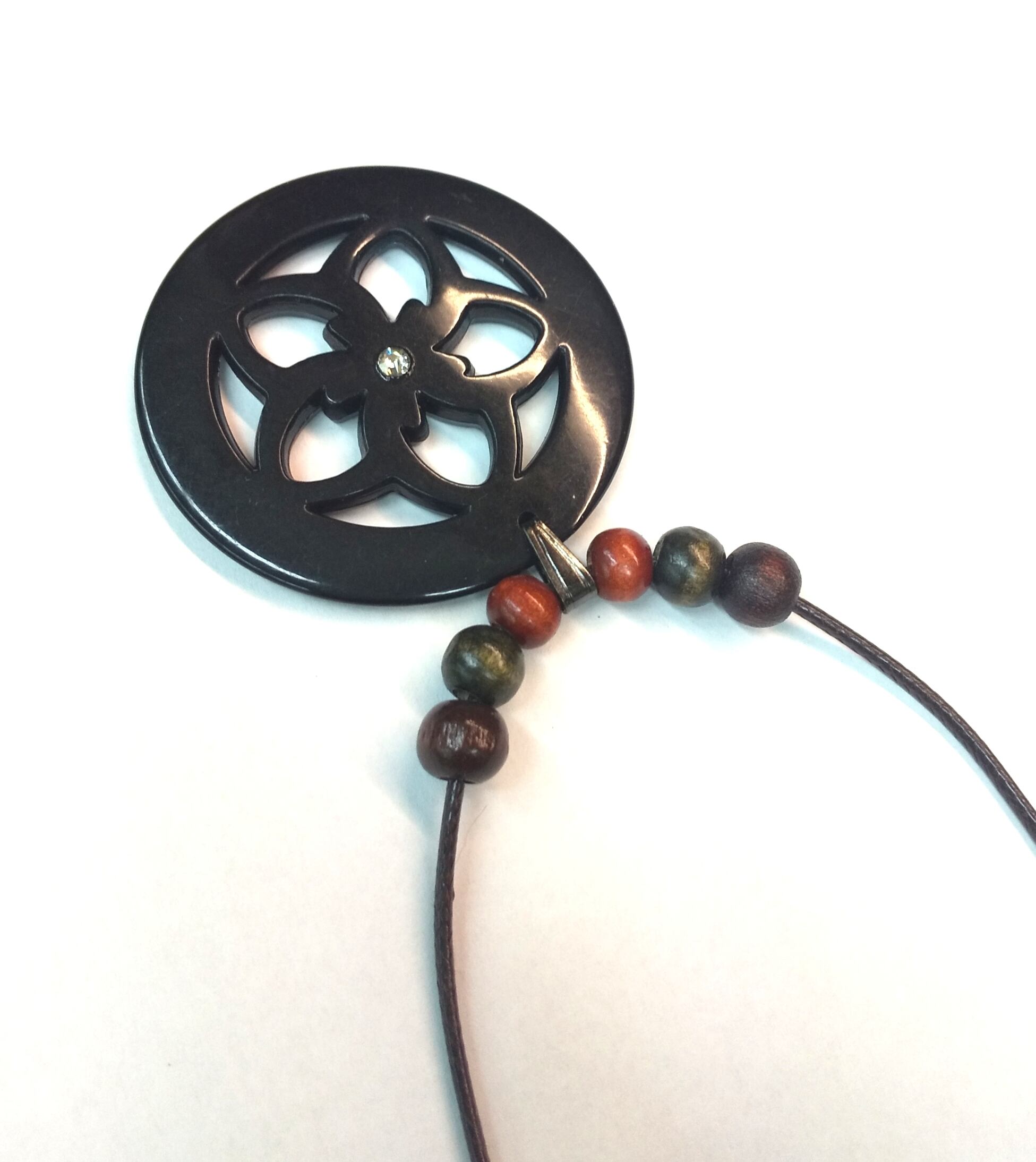 ハワイアンネックレス ブラックカラー サークル プルメリア&スワロ粒 P-618