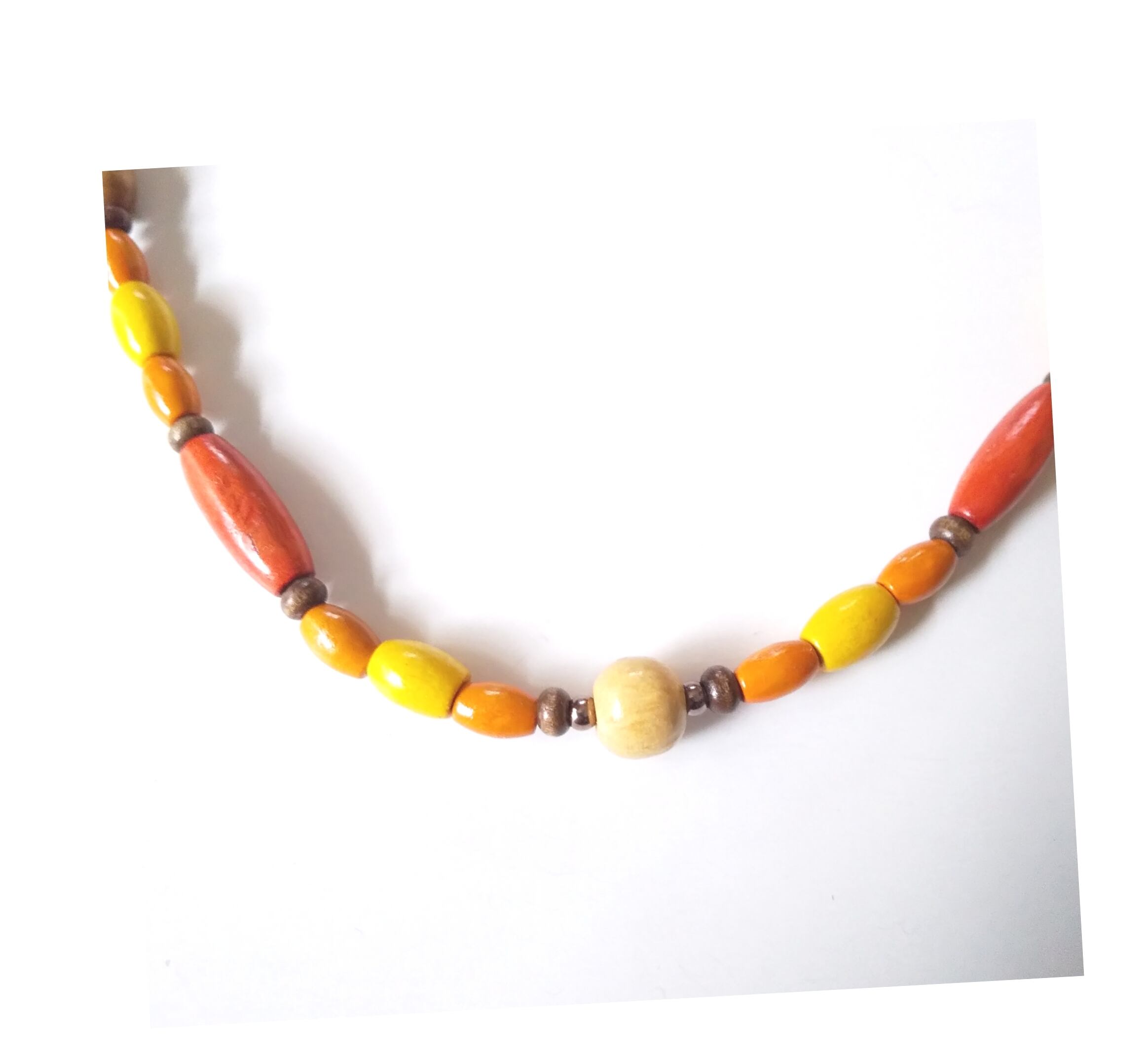 レディースネックレス ナチュラルウッド オレンジ&イエローカラー L-824