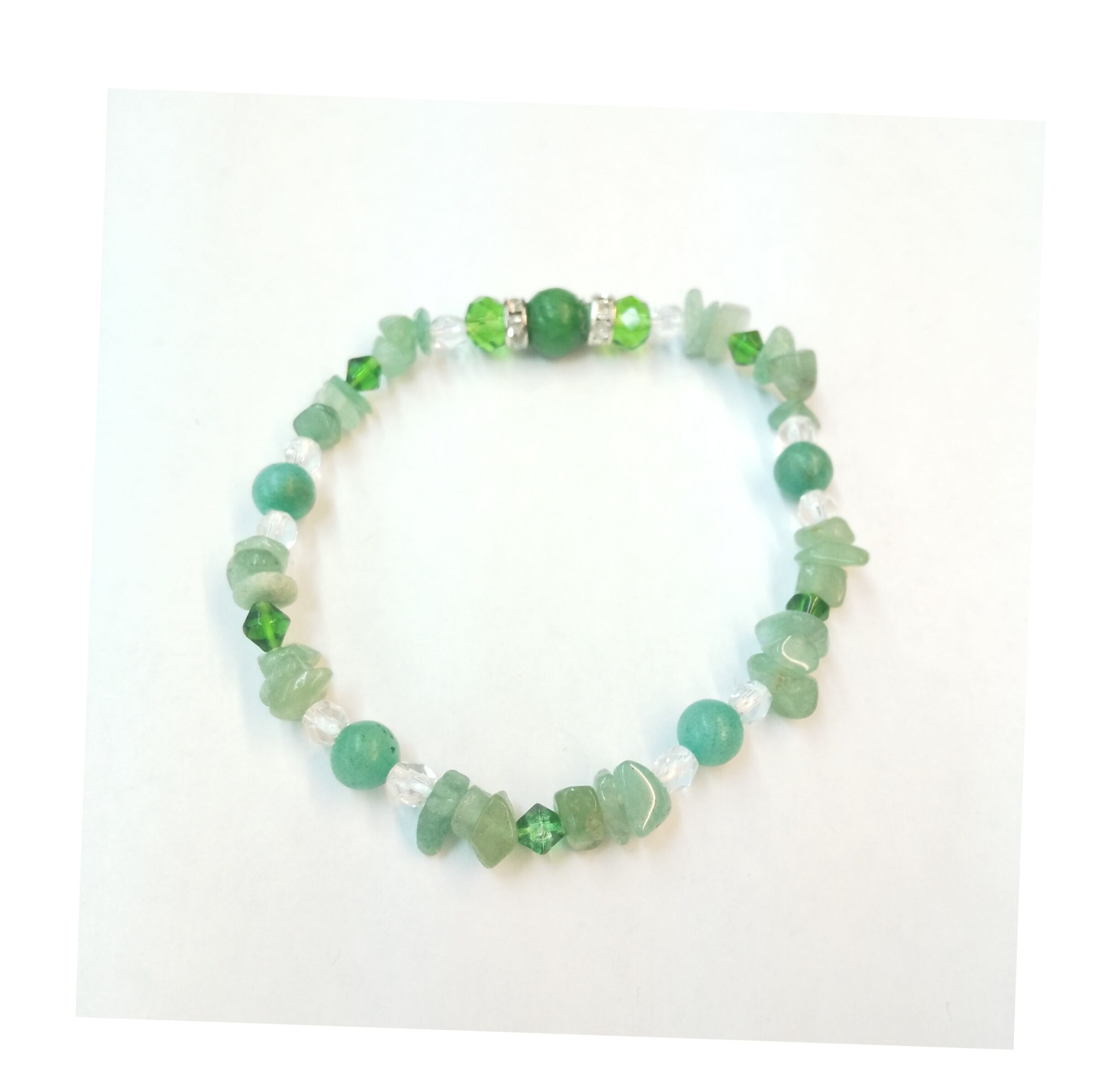 天然石ブレス グリーン翡翠&グリーンメノウ クリスタル M-505
