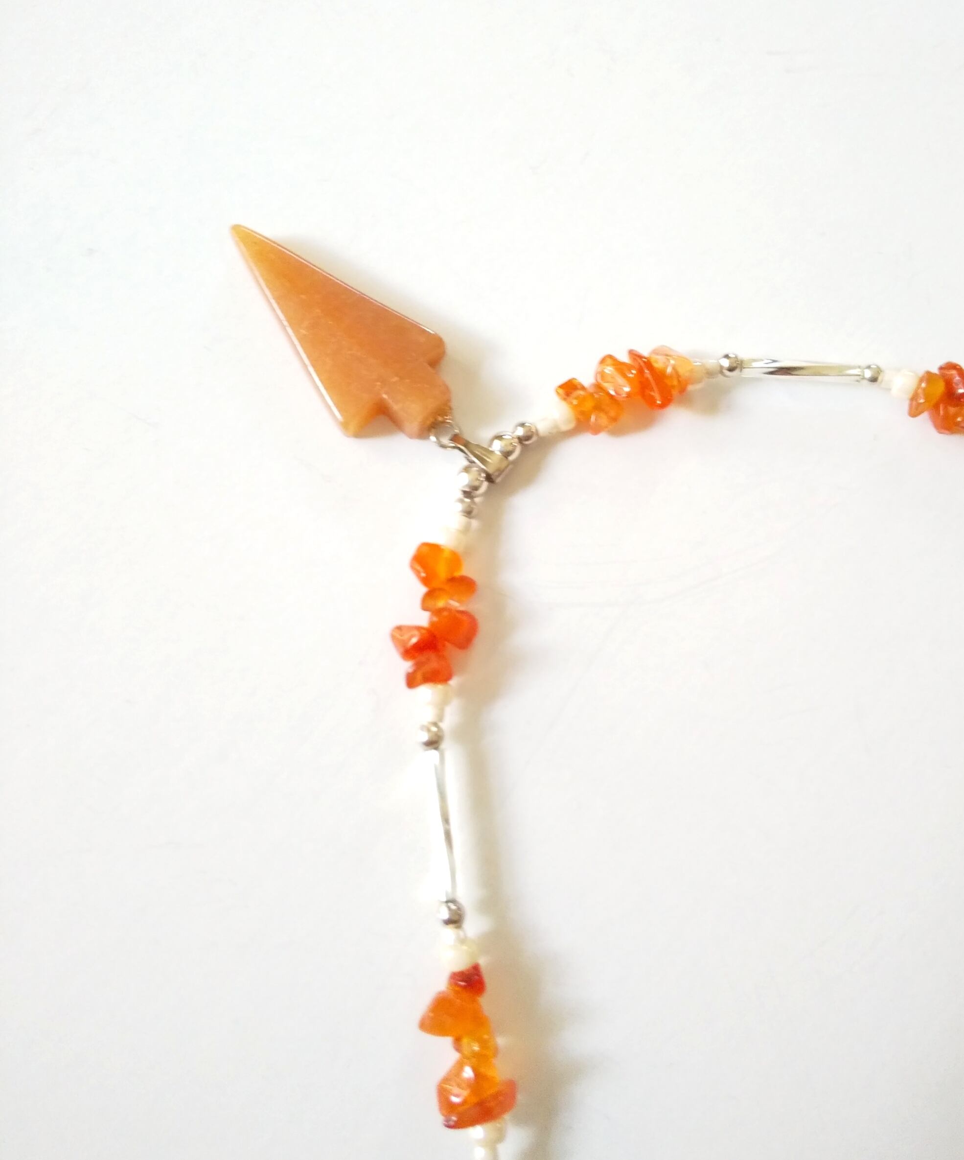 レディースネックレス オレンジカーネリアン アロー &シルバーライン T-708