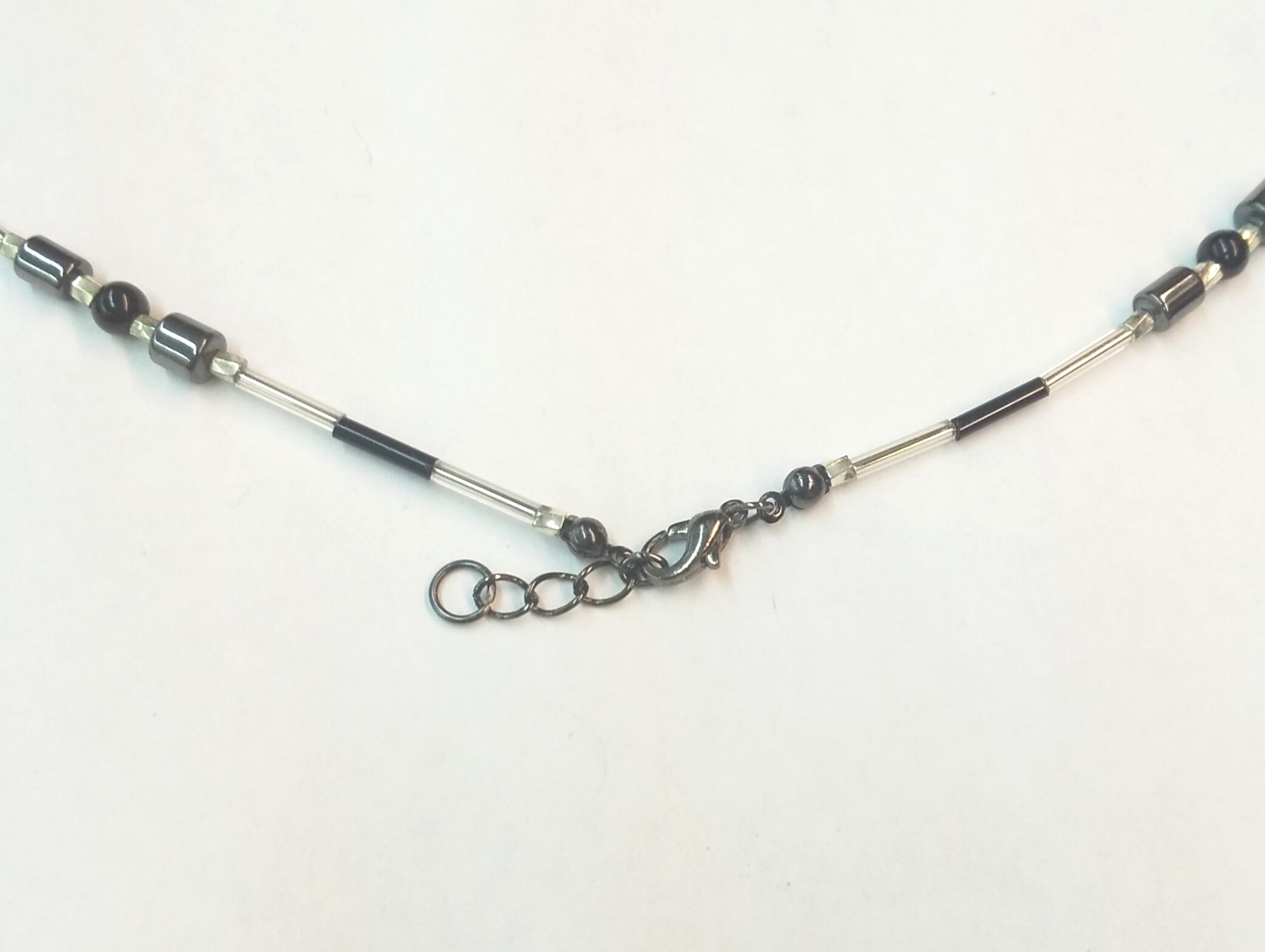 レディースネックレス ヘマタイト ハートデザイン&シルバーライン T-709