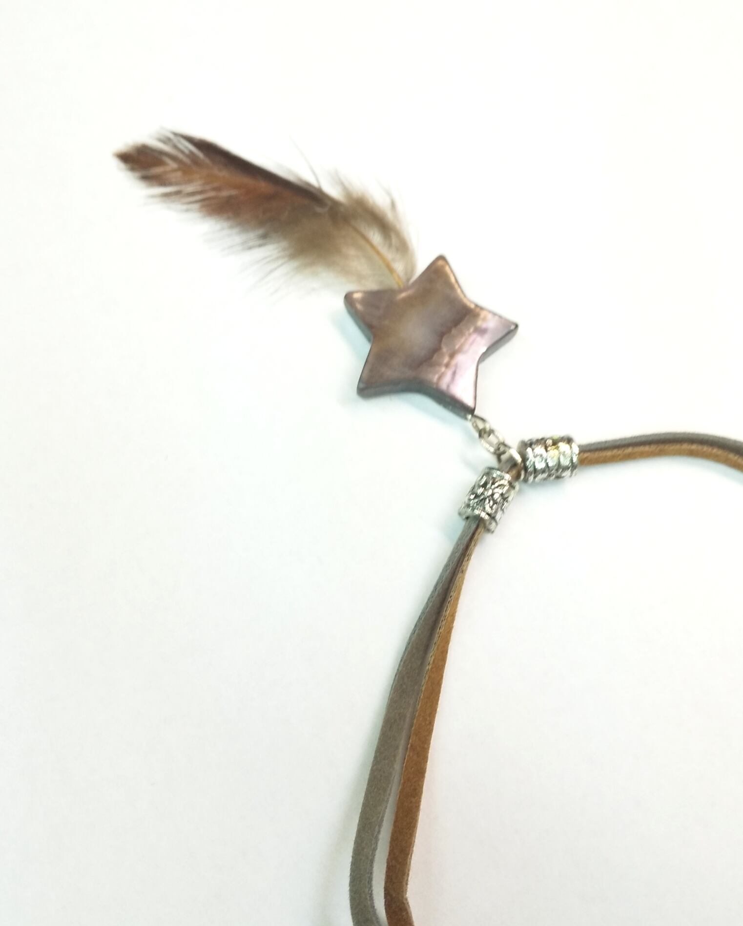 ハワイアンネックレス 天然シェル スター&天然フェザー 黒蝶貝 S-318
