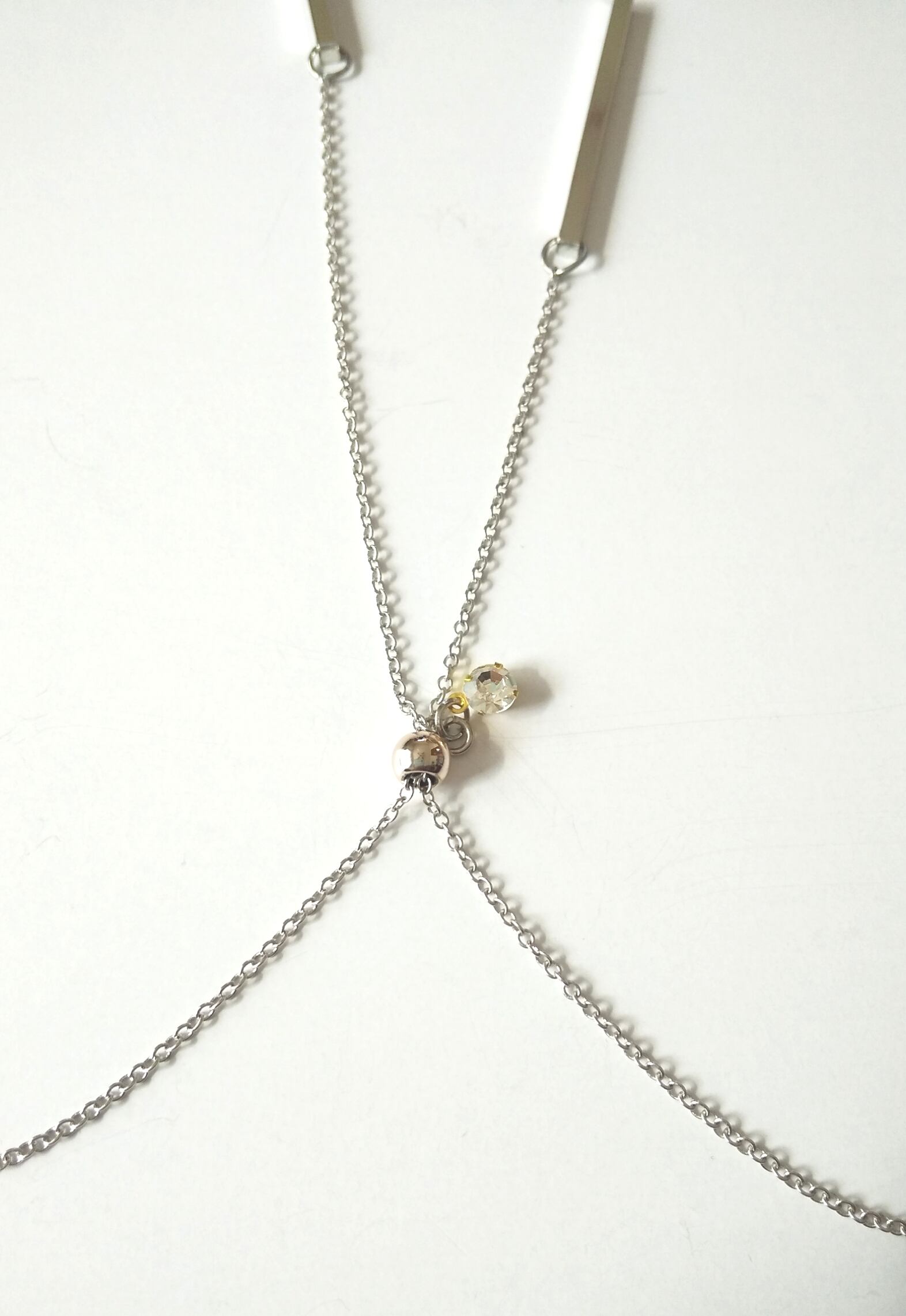 レディースネックレス シルバーカラー2連 スティック&クリアCZ L-826