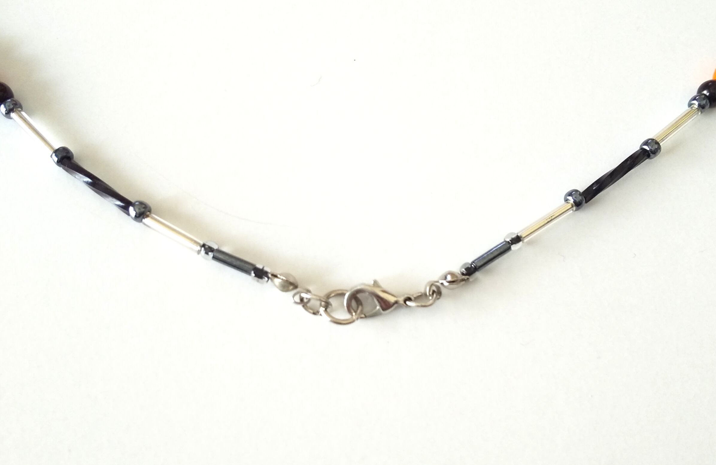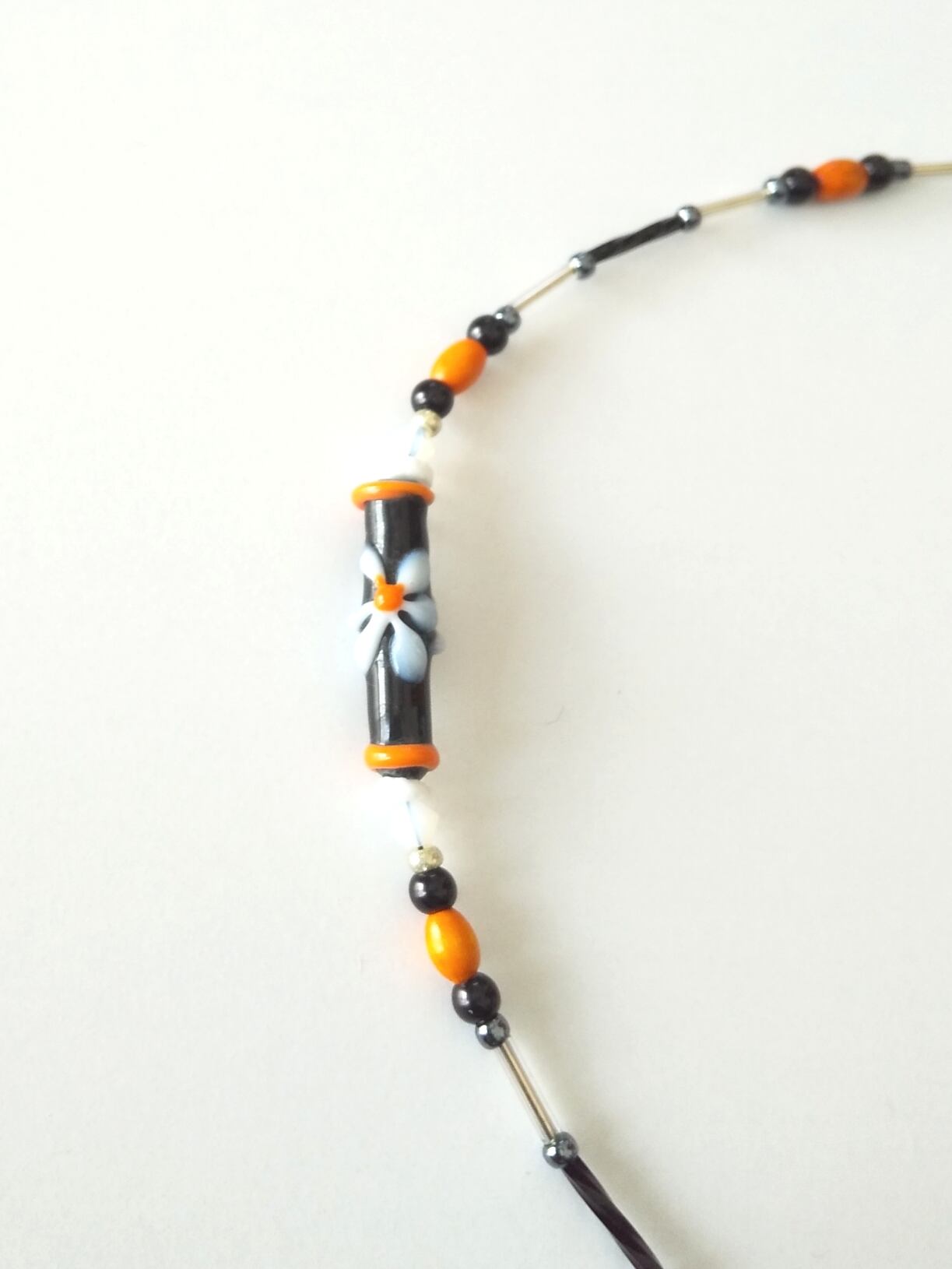 ハワイアンネックレス ティアレ ブラックガラスチューブ &オレンジ L-600