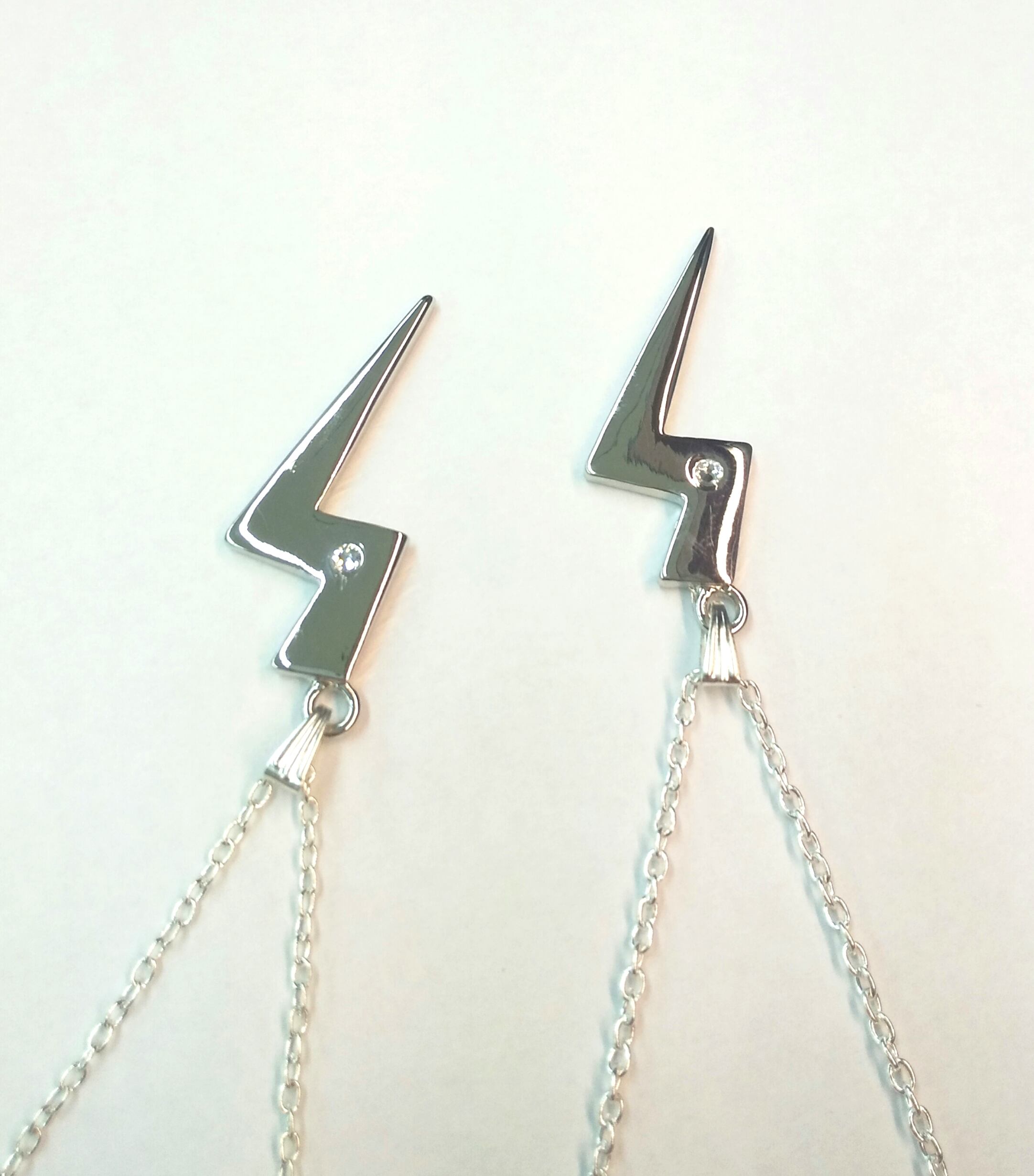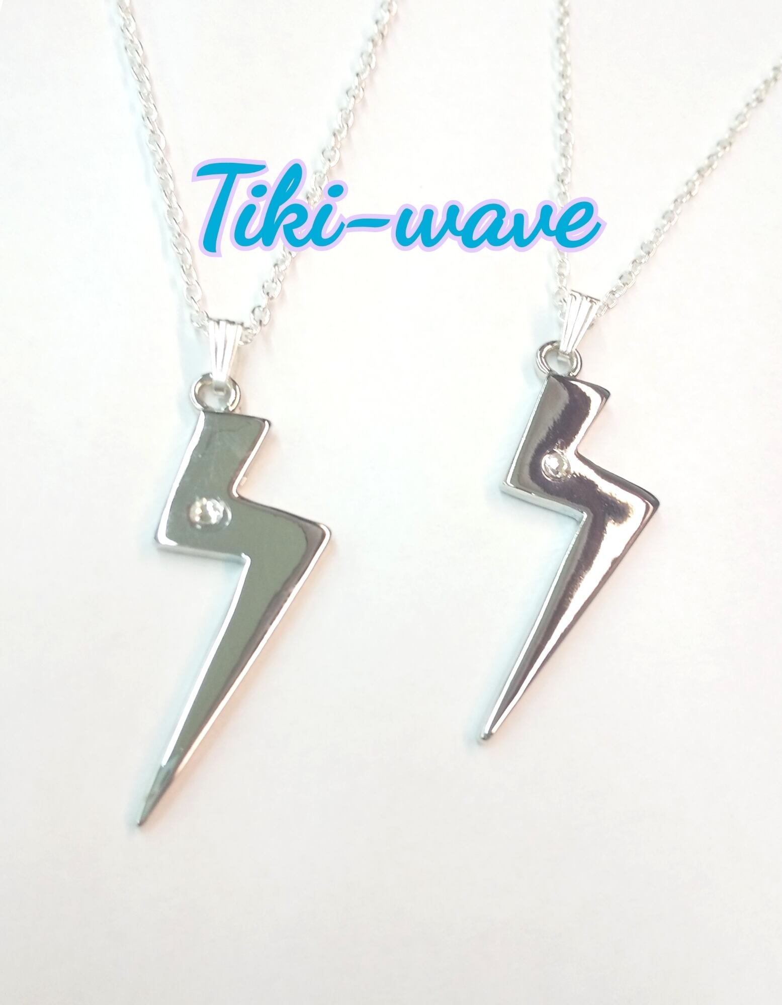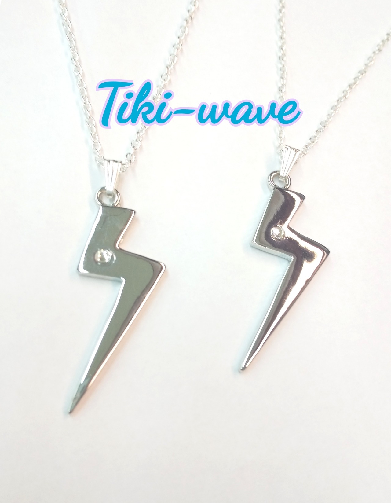ペアネックレス シルバーカラー ボルト VOLT& クリアカラーCZ粒 Y-704