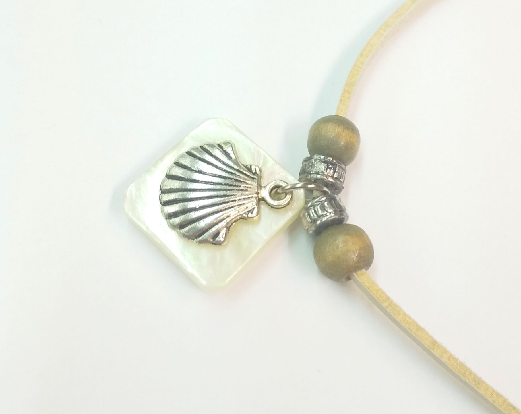 ハワイアンネックレス シルバーカラーシェル& ホワイトパールプレート S-320