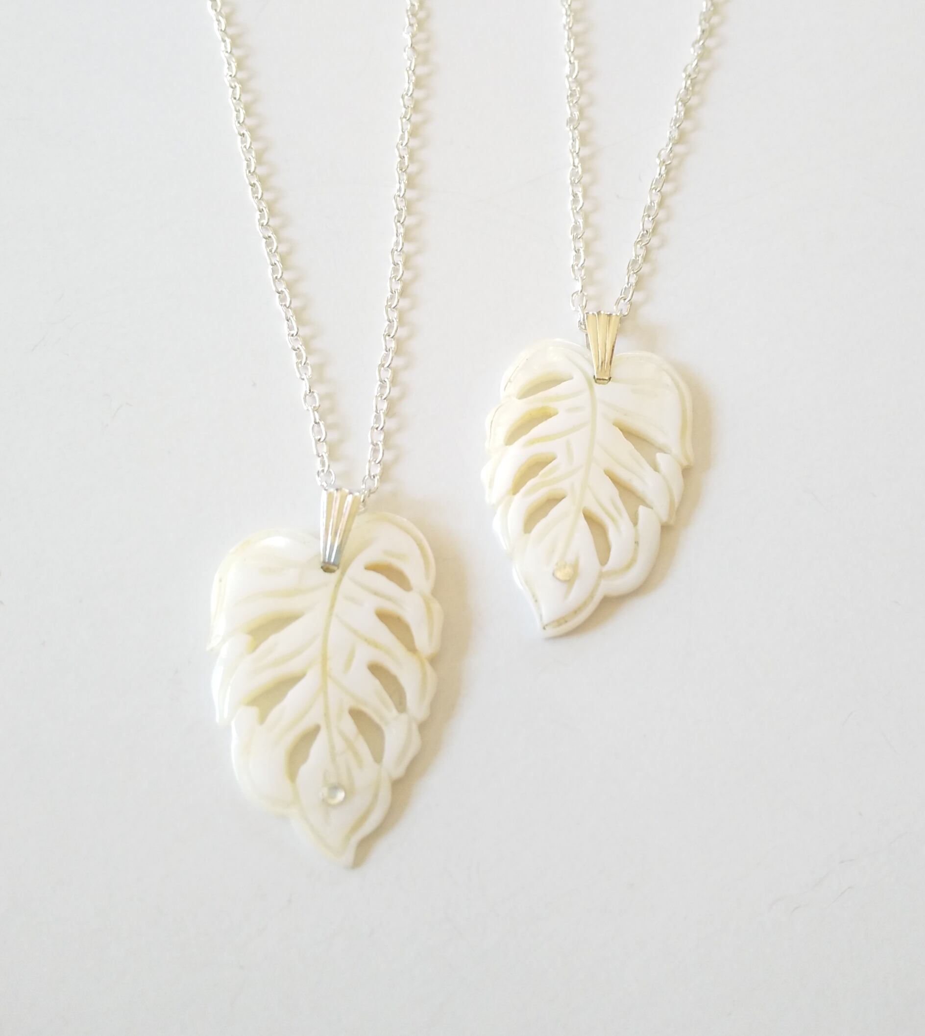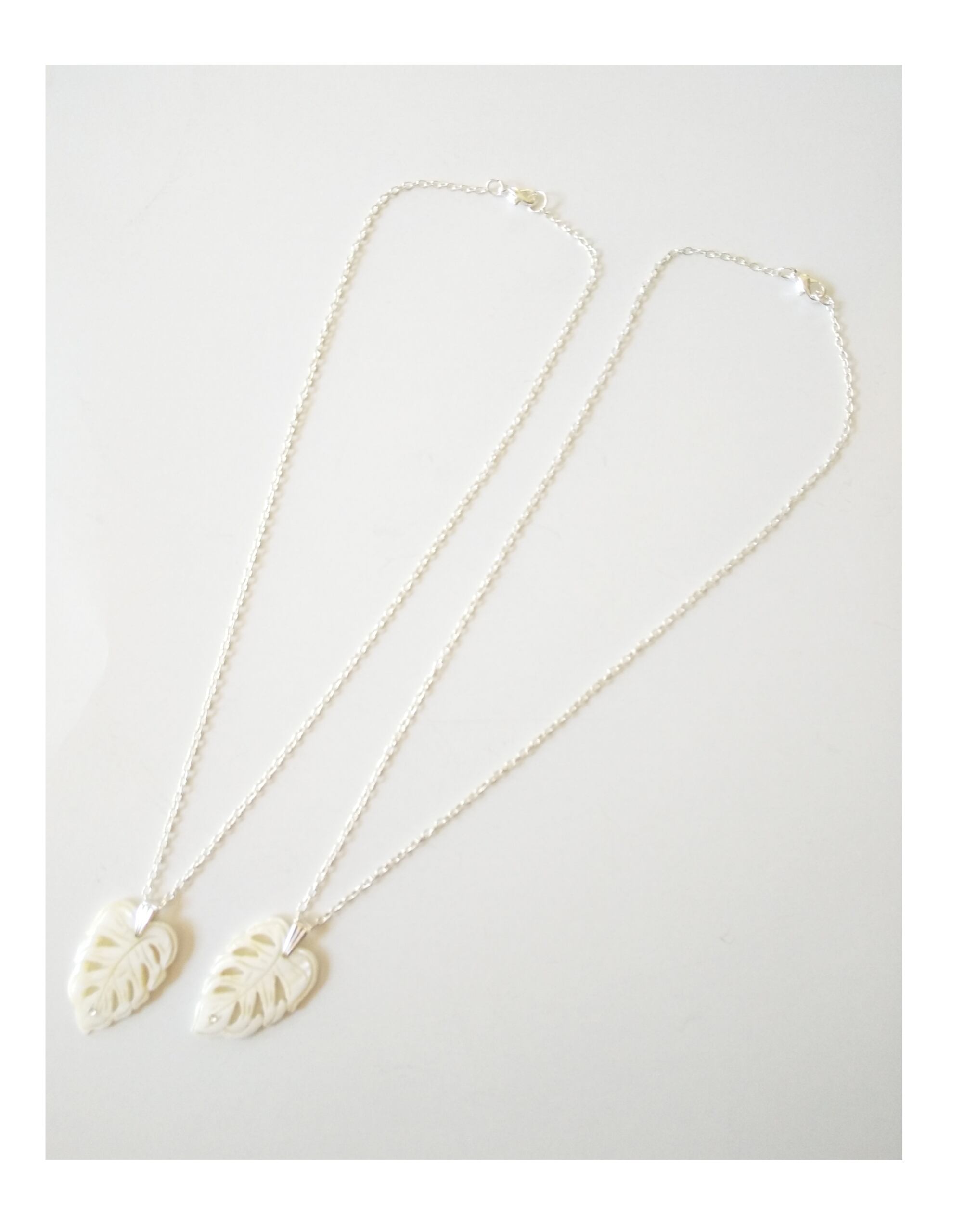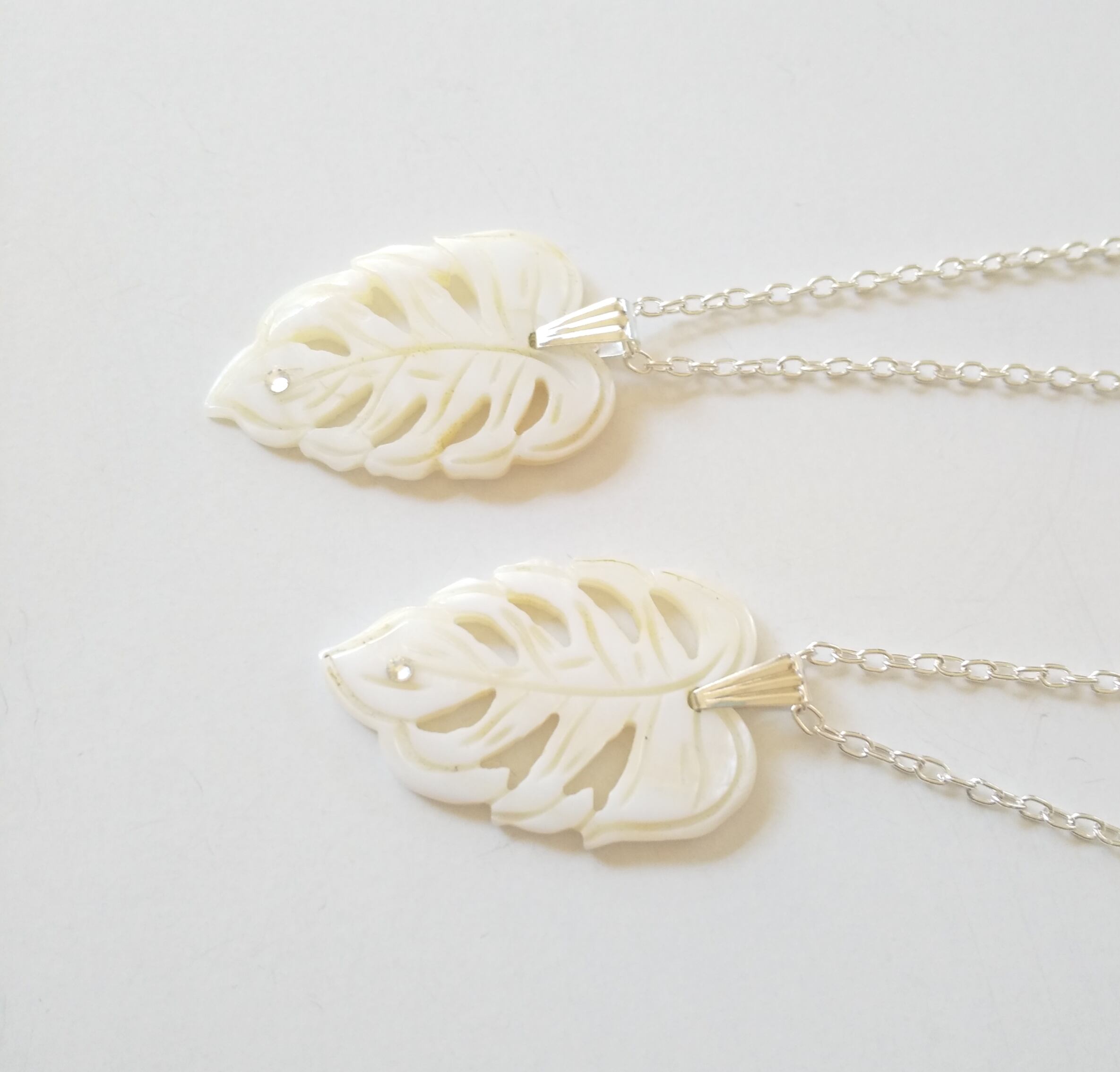 ハワイアンペアネックレス 天然シェルモンステラ&クリアスワロ粒 M-501