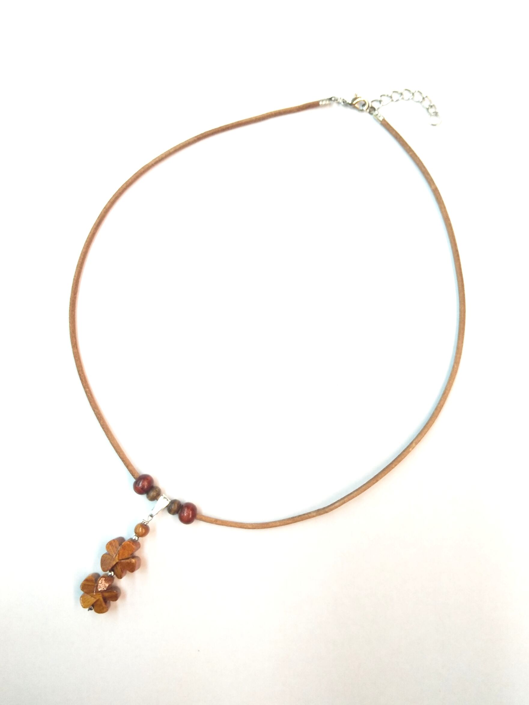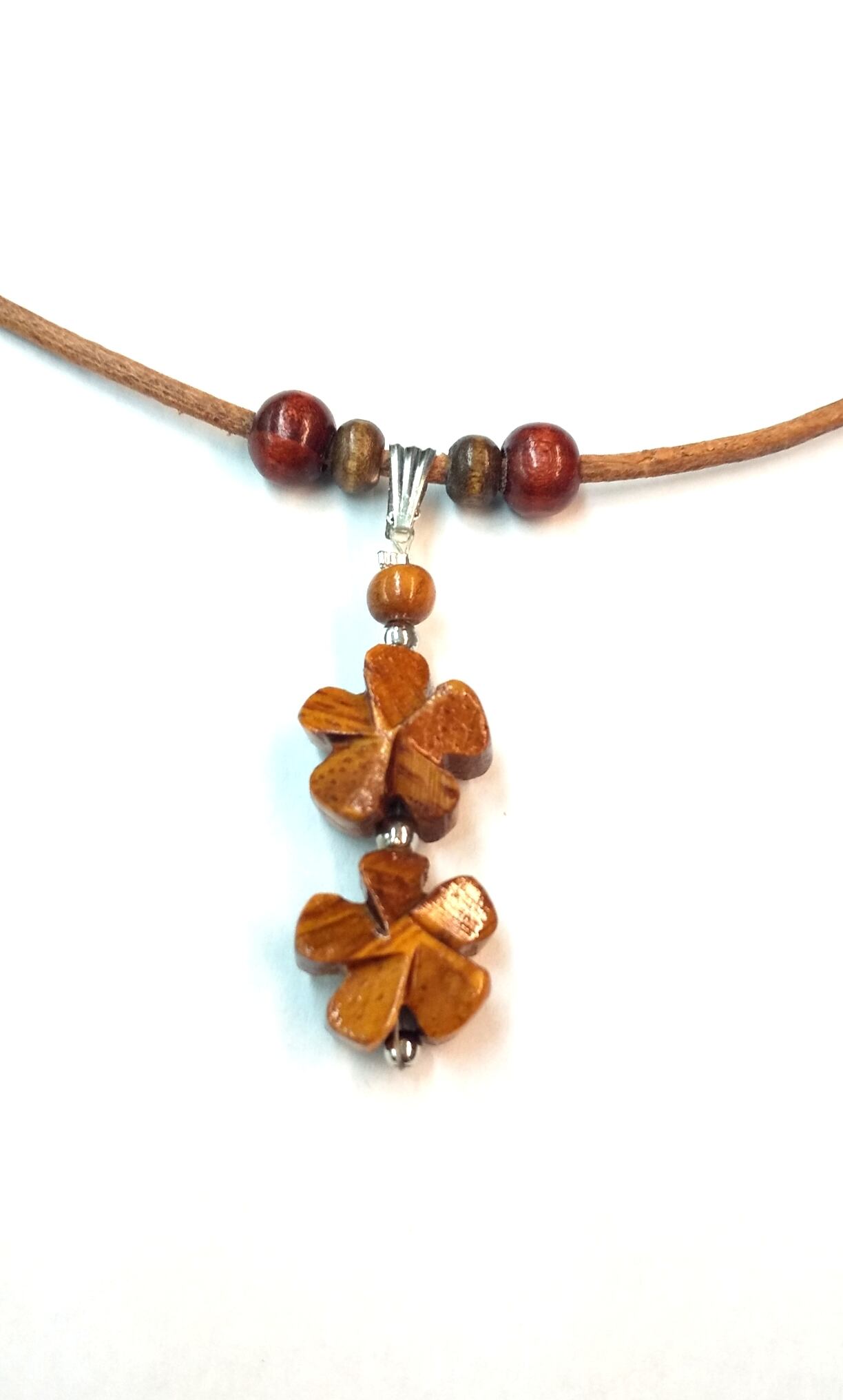 ハワイアンネックレス ハワイウッド 2連プルメリア&本革紐 P-620