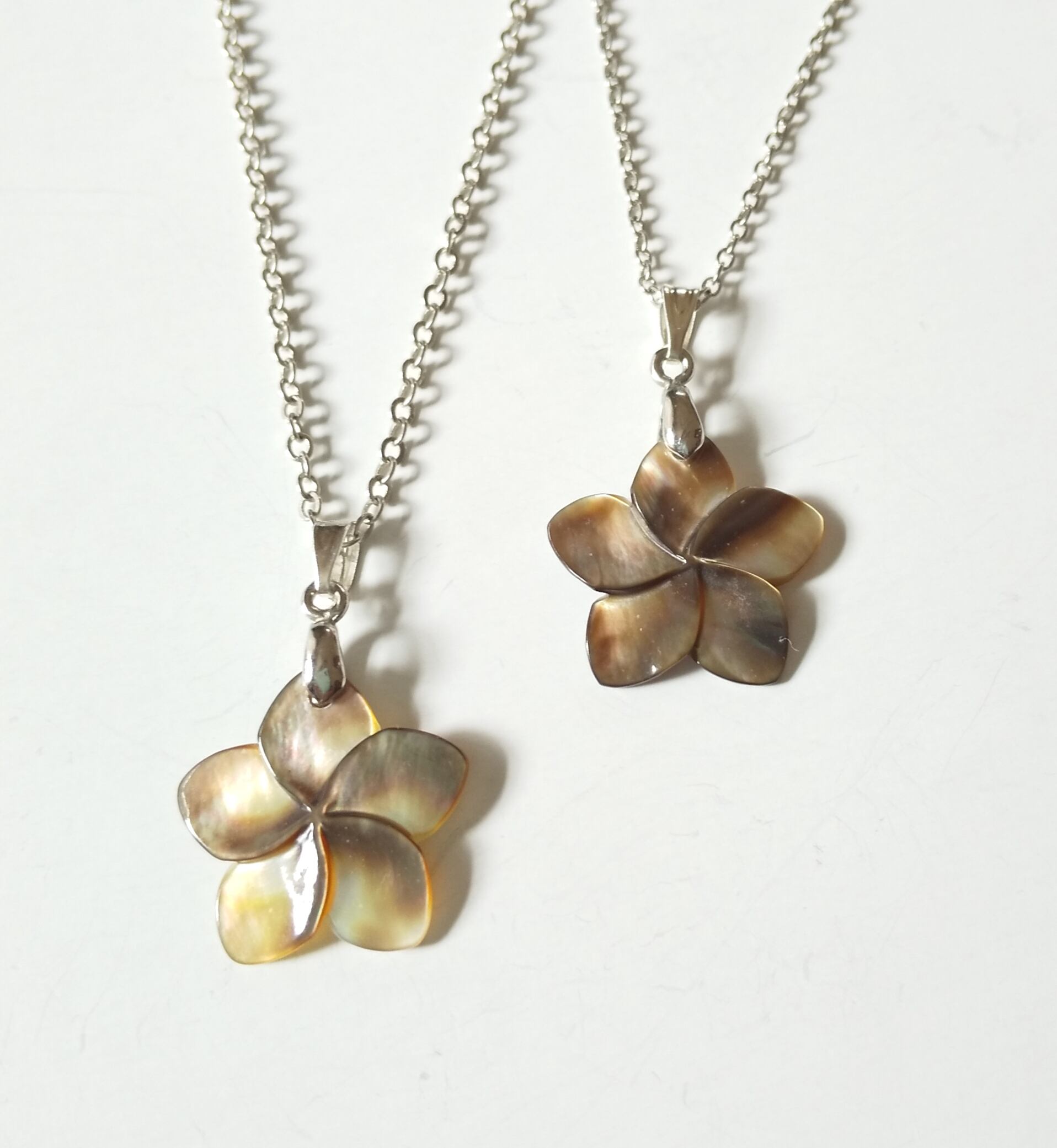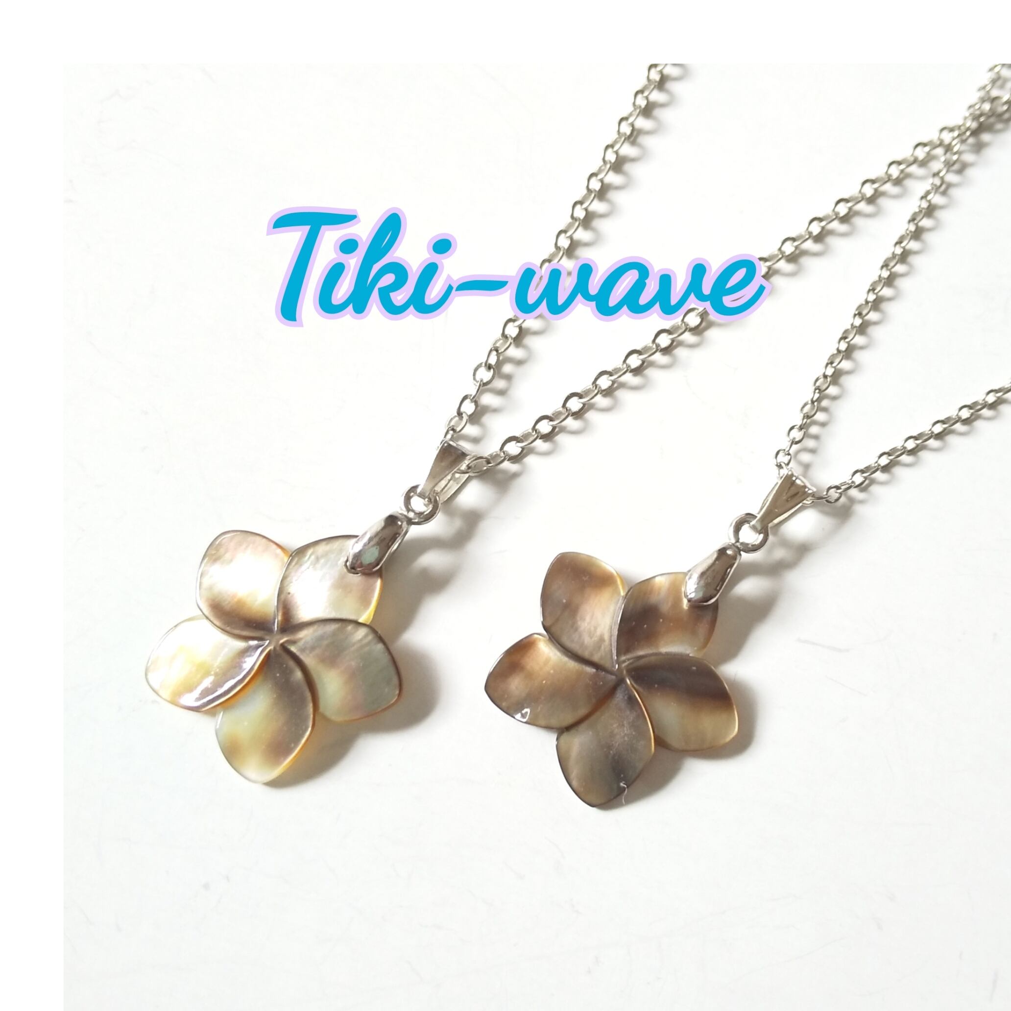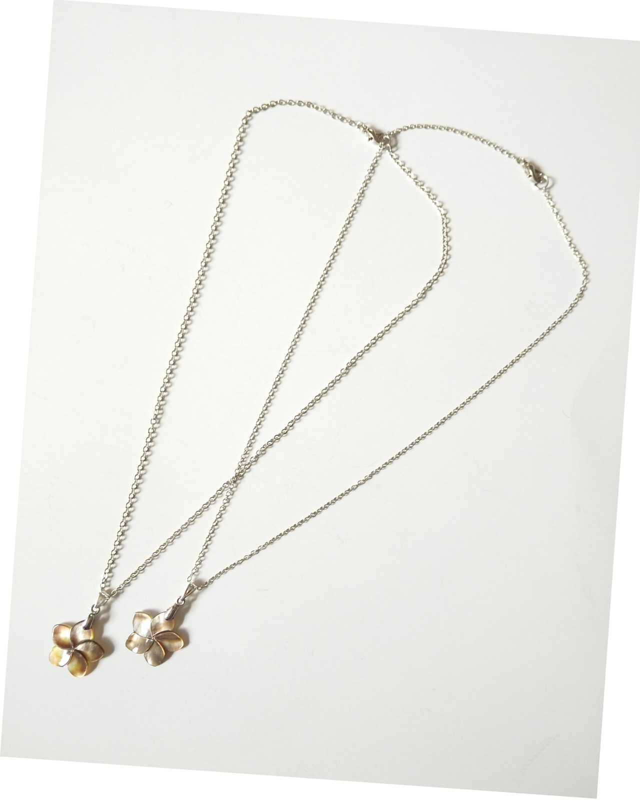 ハワイアンペアネックレス ブラックシェル 黒蝶貝 プルメリア 2本セット P-624