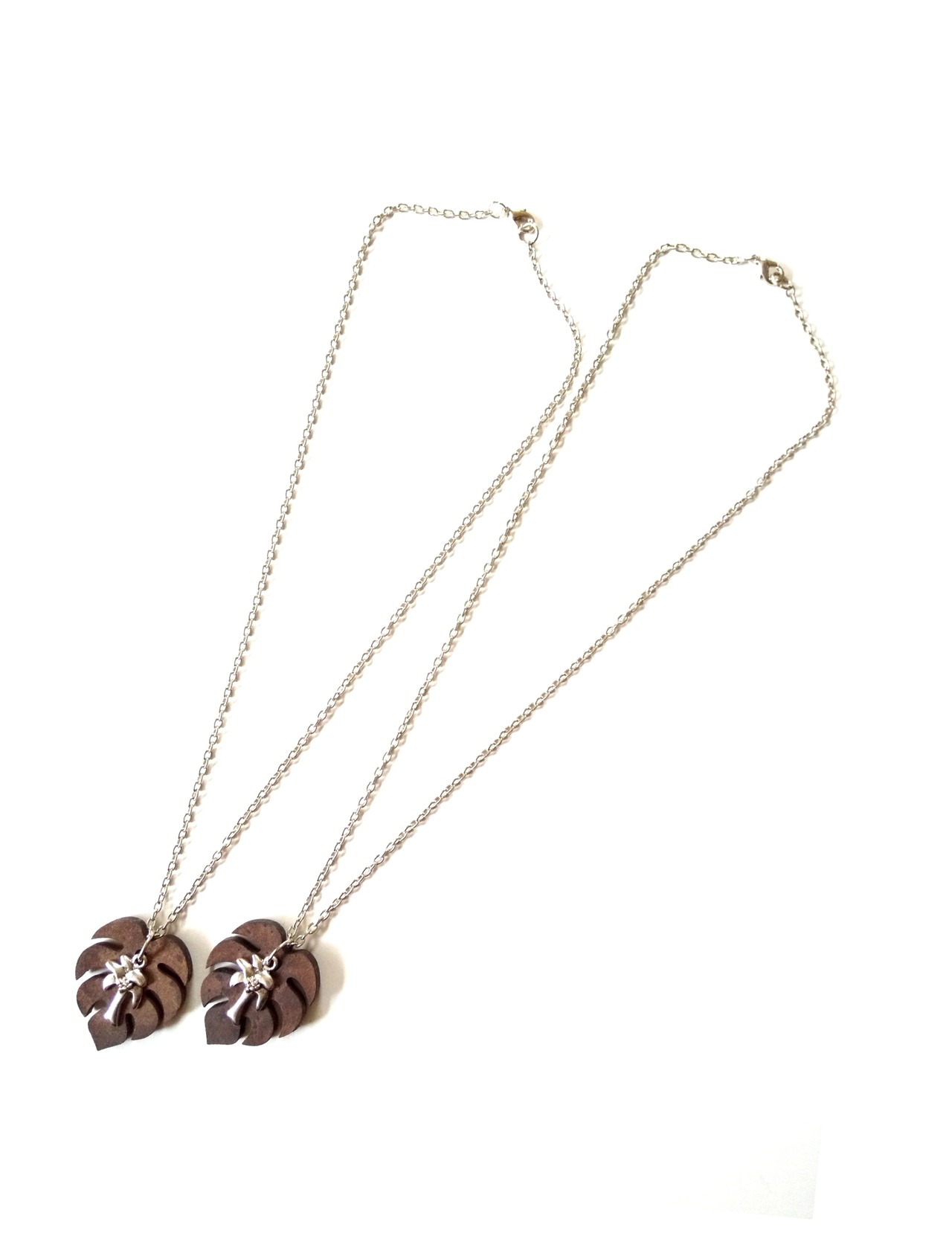 ハワイアンペアネックレス シルバー椰子&ウッドモンステラ M-502