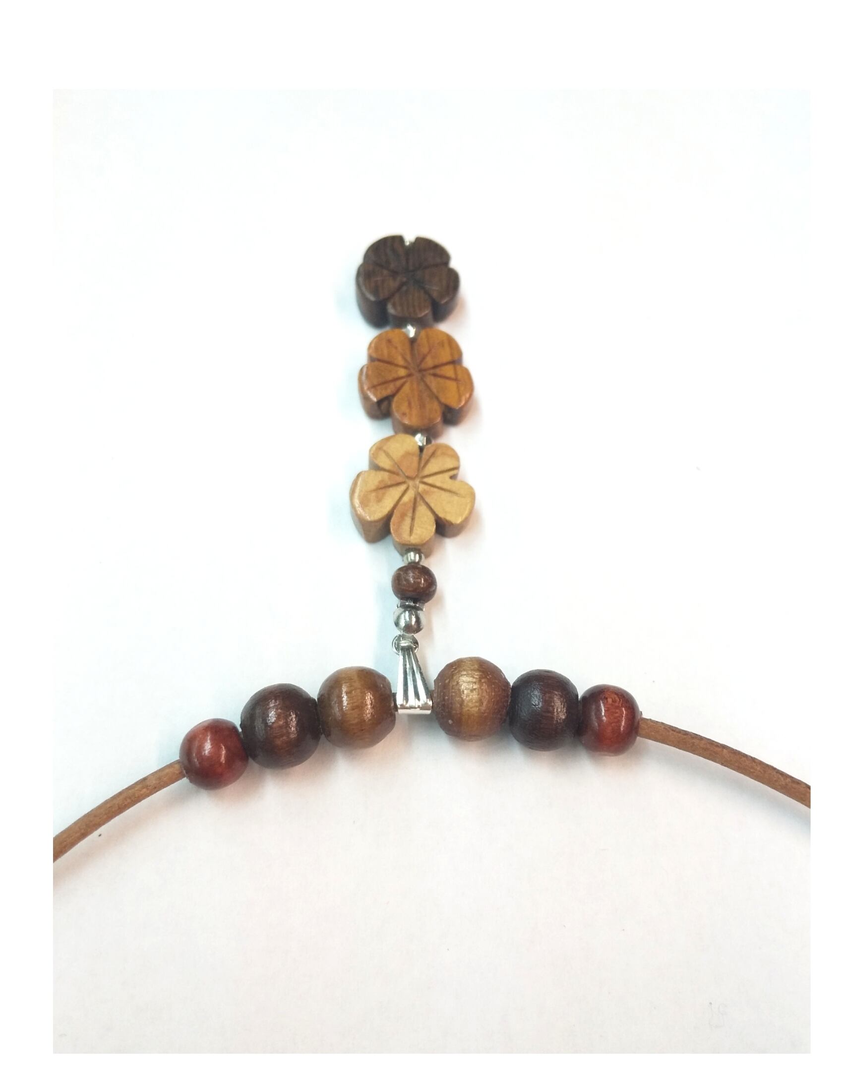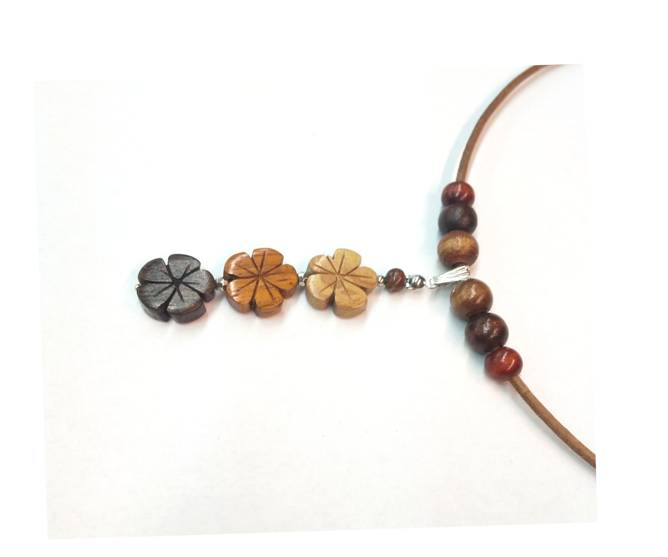 ハワイアンネックレス 天然ウッド ブラウン 3連プルメリア P-626