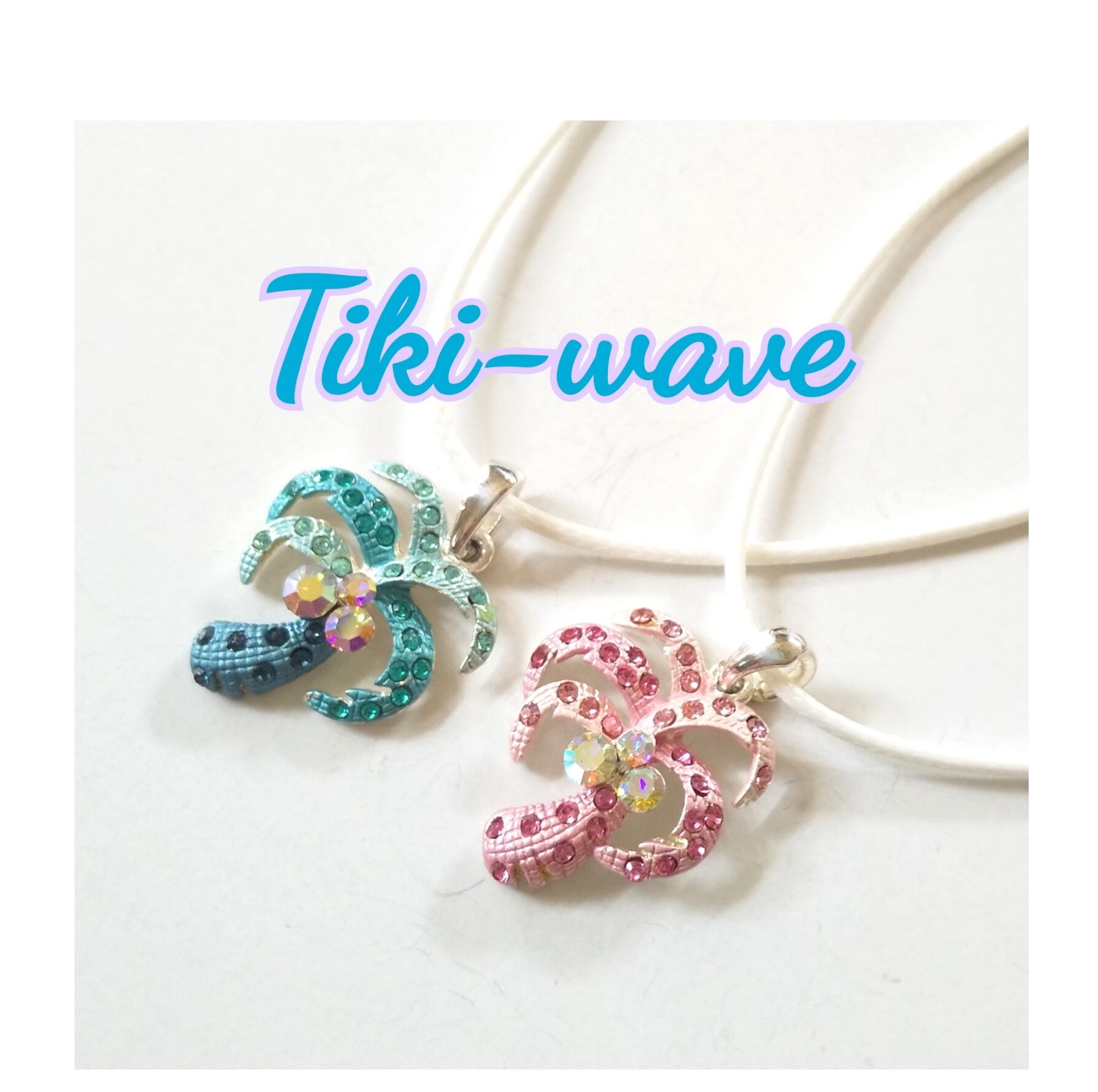 ハワイアンネックレス 2本ペア 椰子 パームツリー ピンク&ブルー U-504