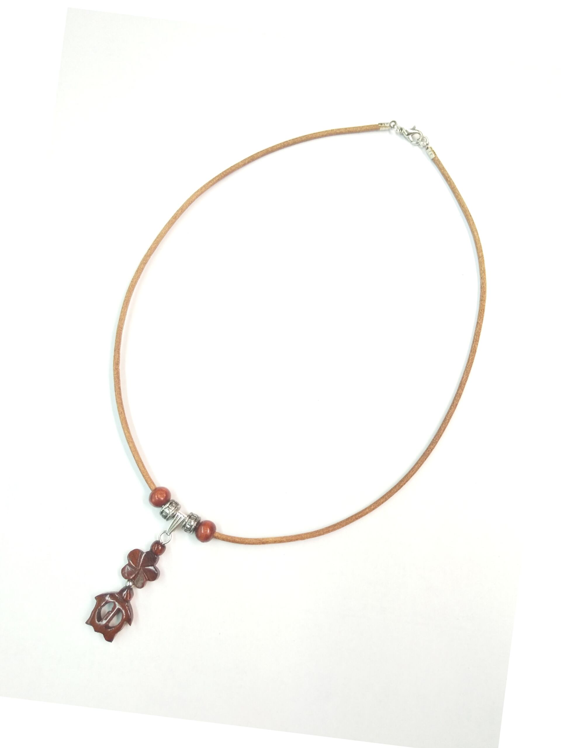 ハワイアンネックレス 天然ハワイウッド ホヌ&プルメリア 本革紐 H-116
