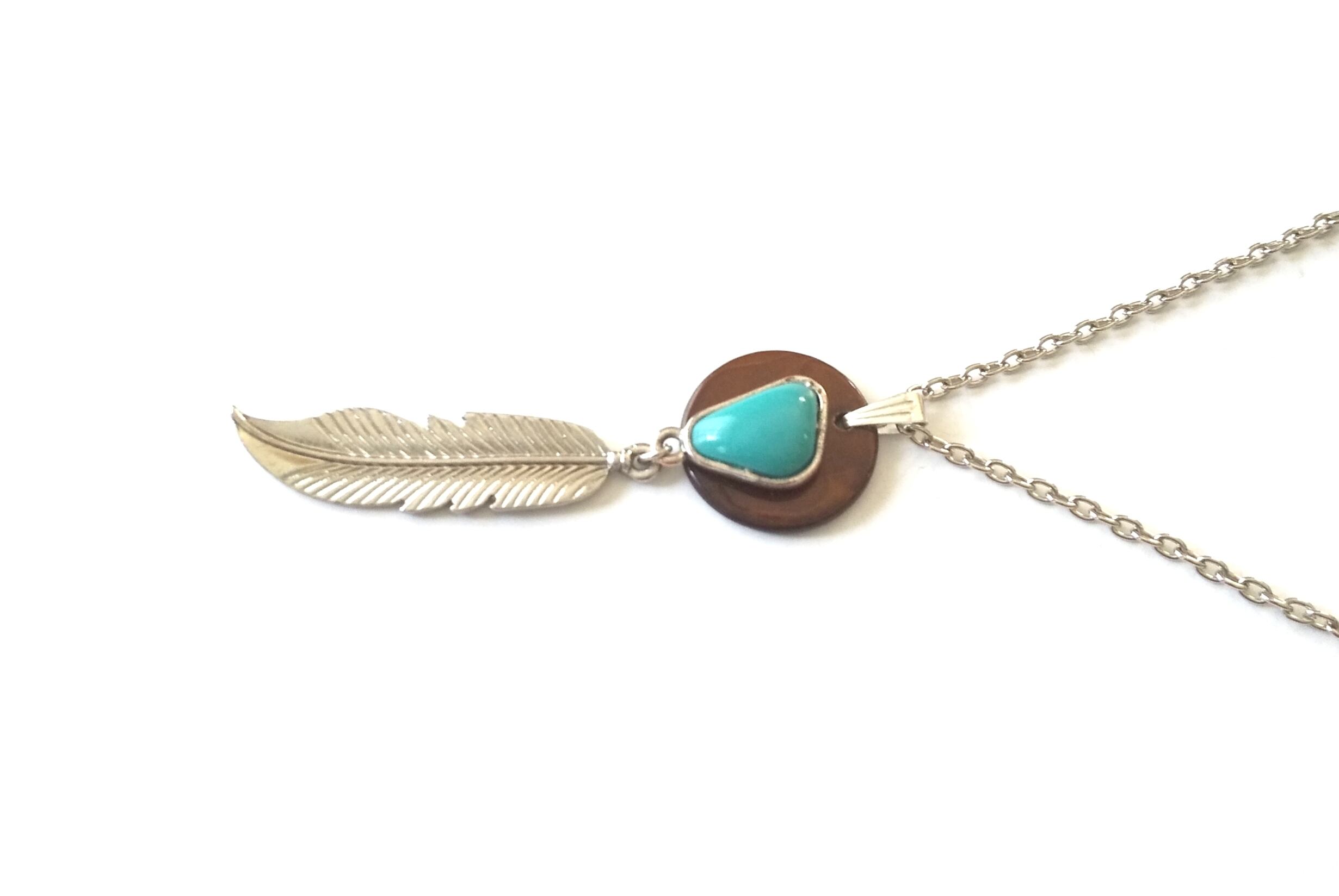 メンズネックレス シルバーカラー フェザー&ブルーターコイズ Y-510